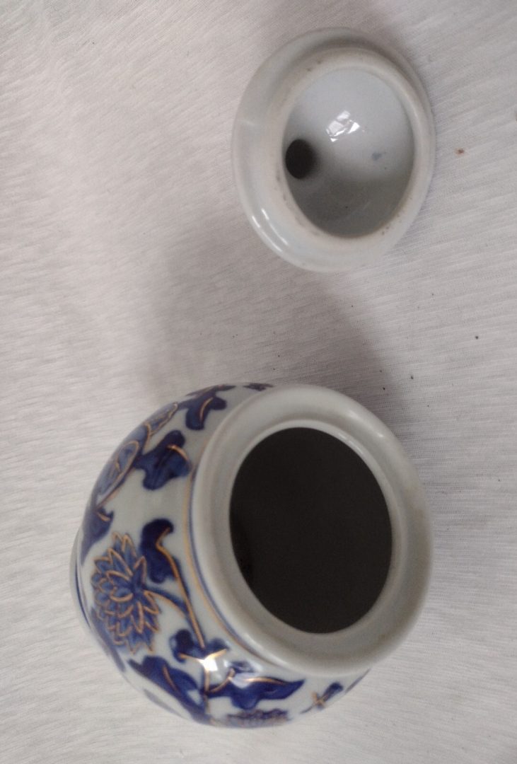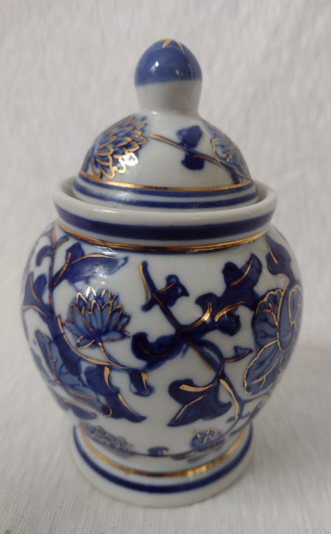 Victorian Style Blue White & Gold Ginger Jar Candy Craft 14.5cm Vintage