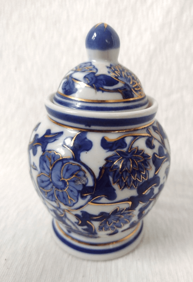 Be the first to review “Victorian Style Blue White & Gold Ginger Jar Candy Craft 14.5cm Vintage” Cancel reply