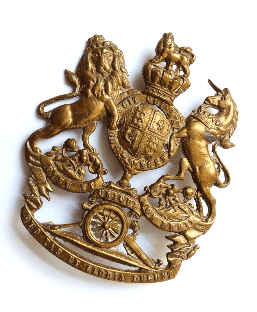 Victorian Volunteer Artillery Helmet Plate Badge QVC Cast Brass 3lug Antique Org