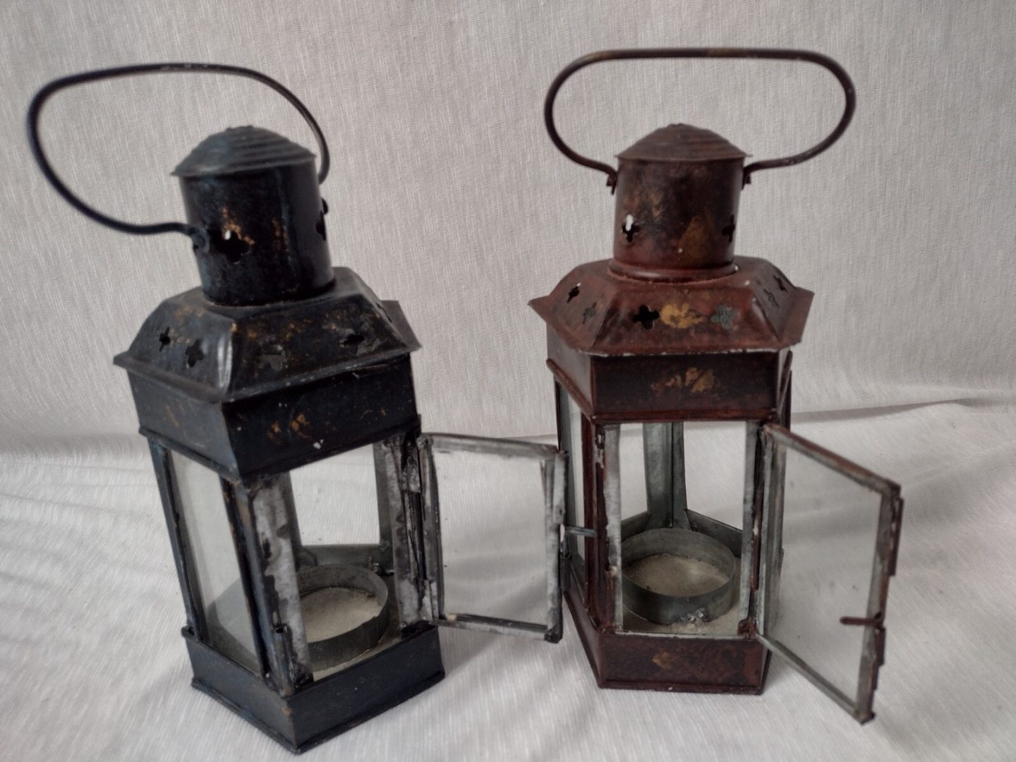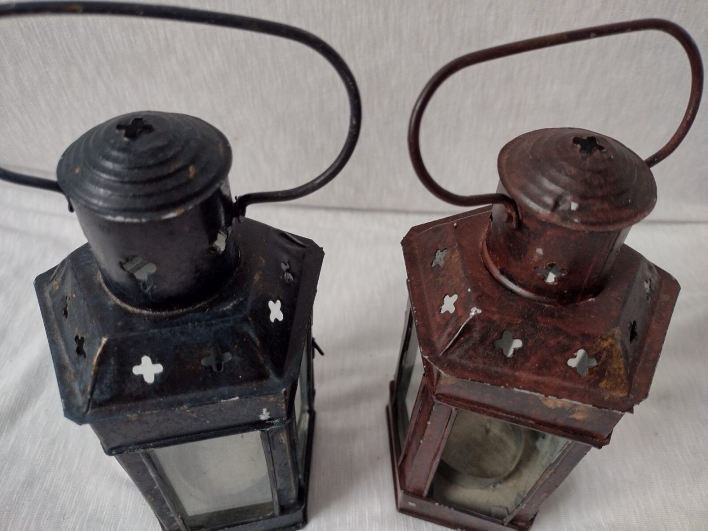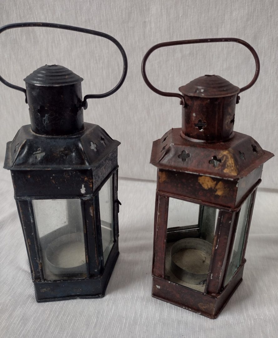 Vintage Metal Tea Light Votive Candle Holder Lantern 17cm x 7.8cm Pair