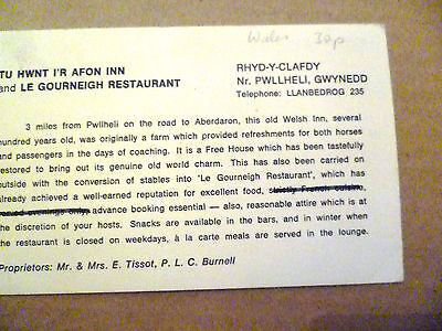 You are purchasing old original very collectable vintage Postcard of ‘‘74.Tu Hwnt l’R Afon Inn & Le Gourneigh Restaurant”.