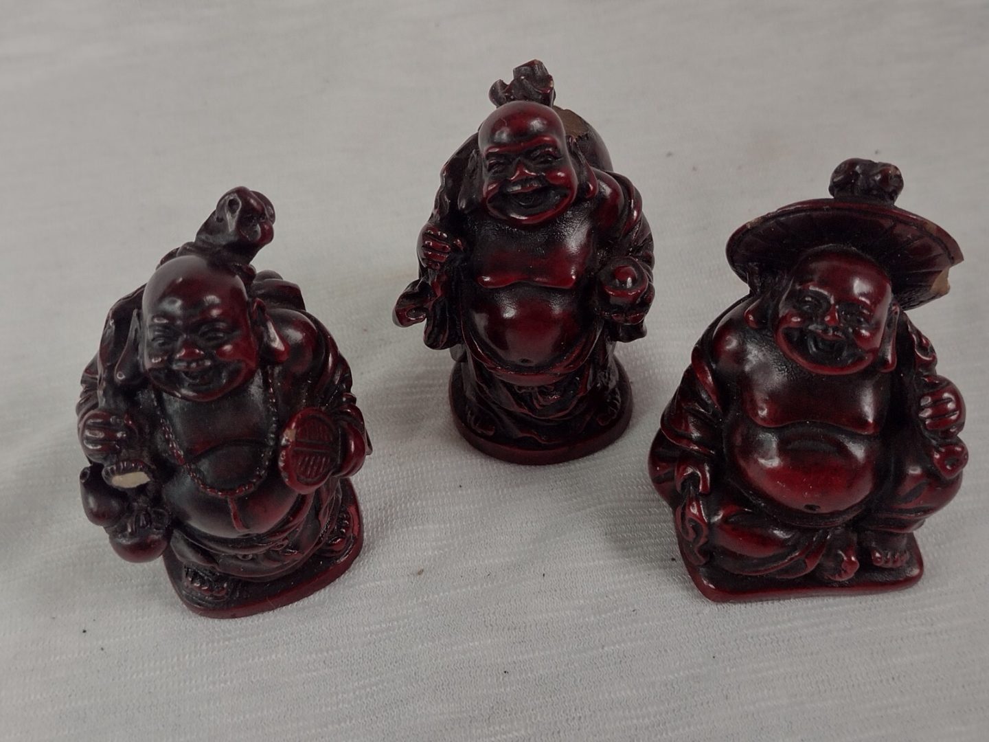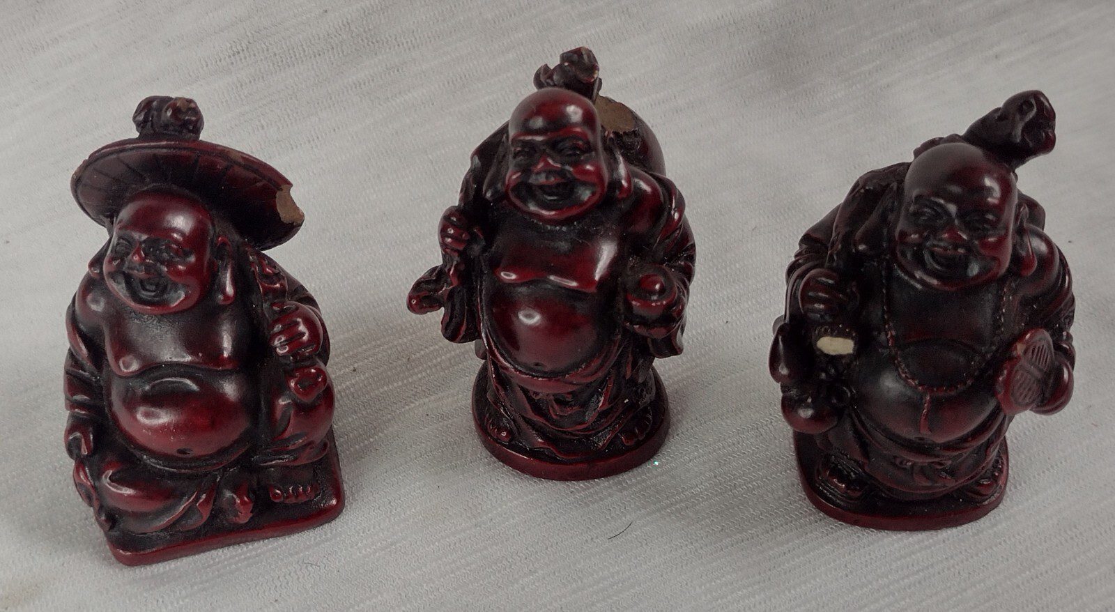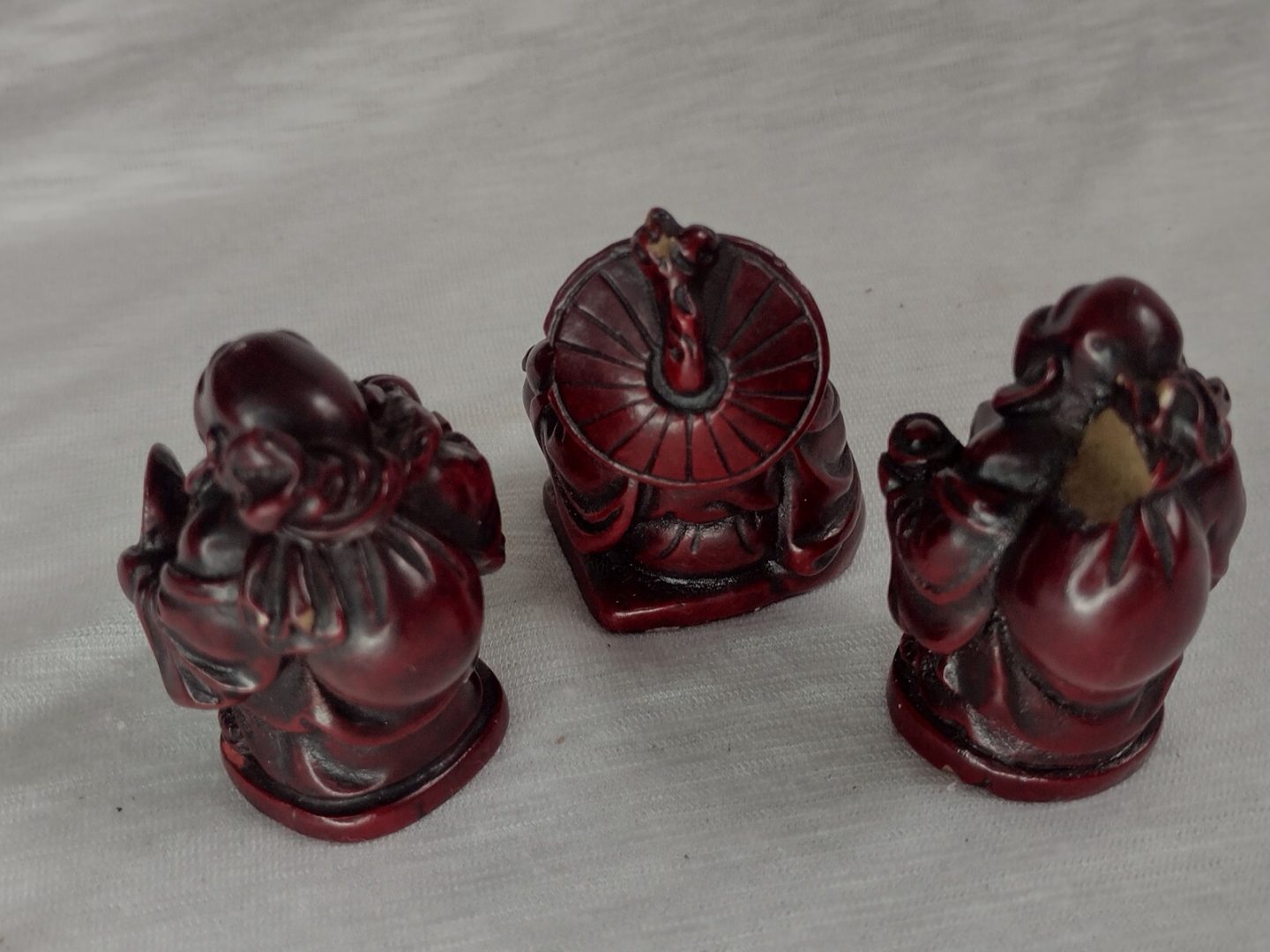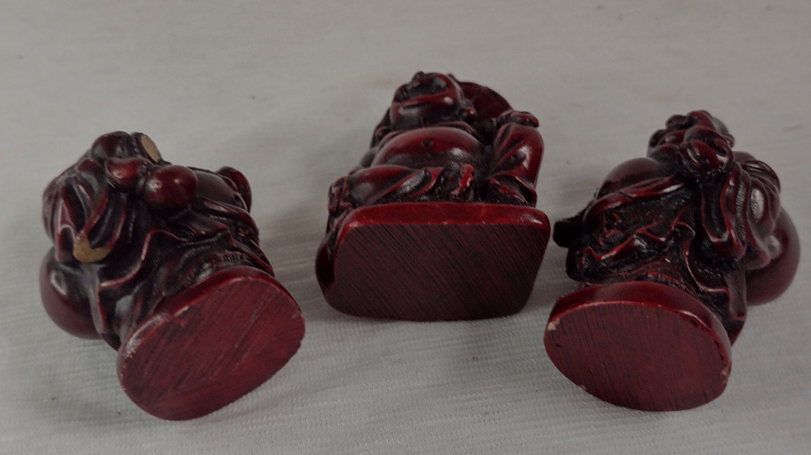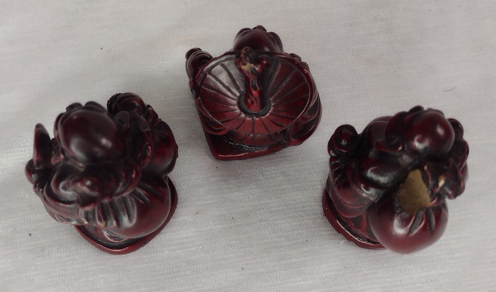 Vintage Red Resin Mini Laughing Wealth Buddha Collectable Chinese Art 3pcs