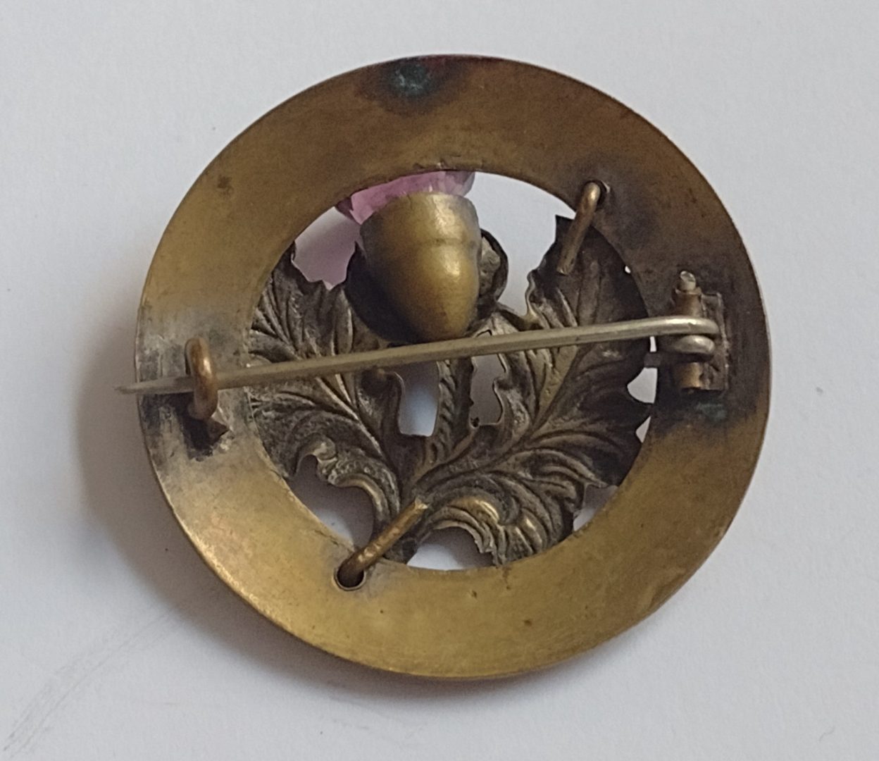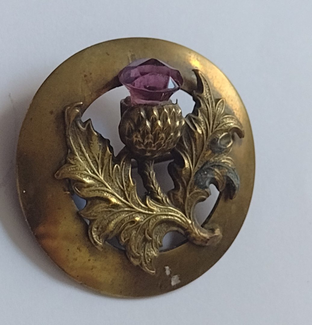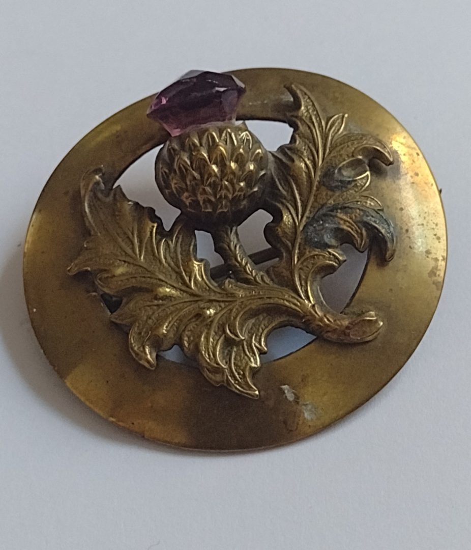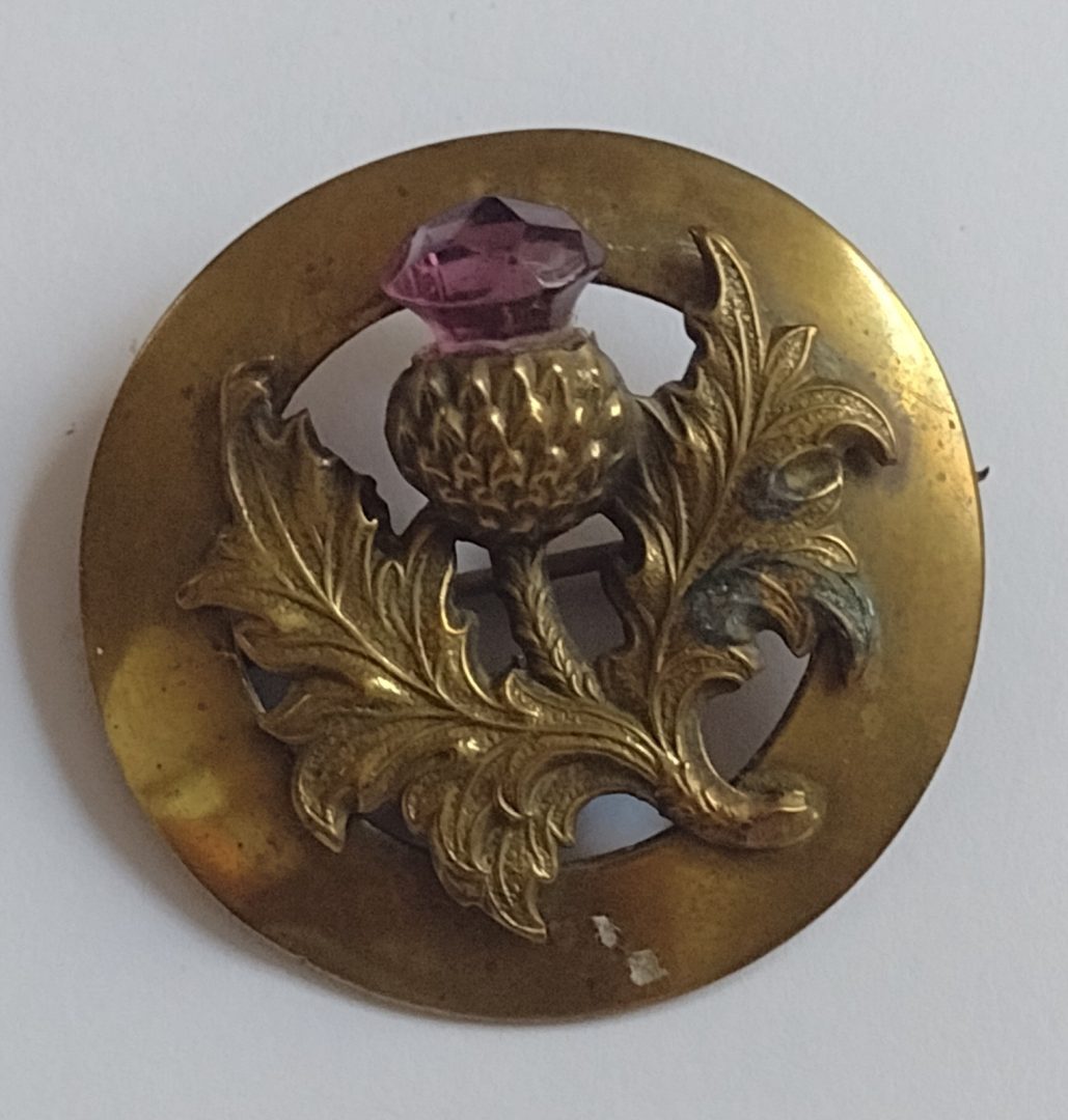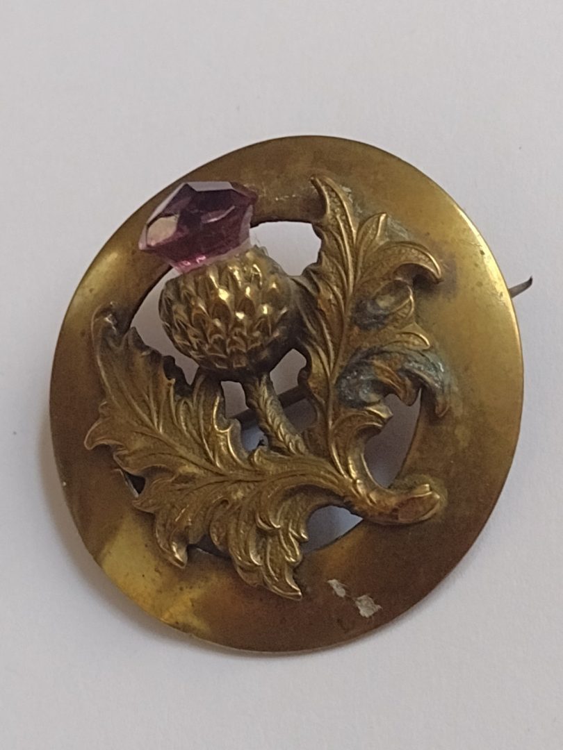 Vintage Scottish Thistle Brooch Badge Solid Brass – Original