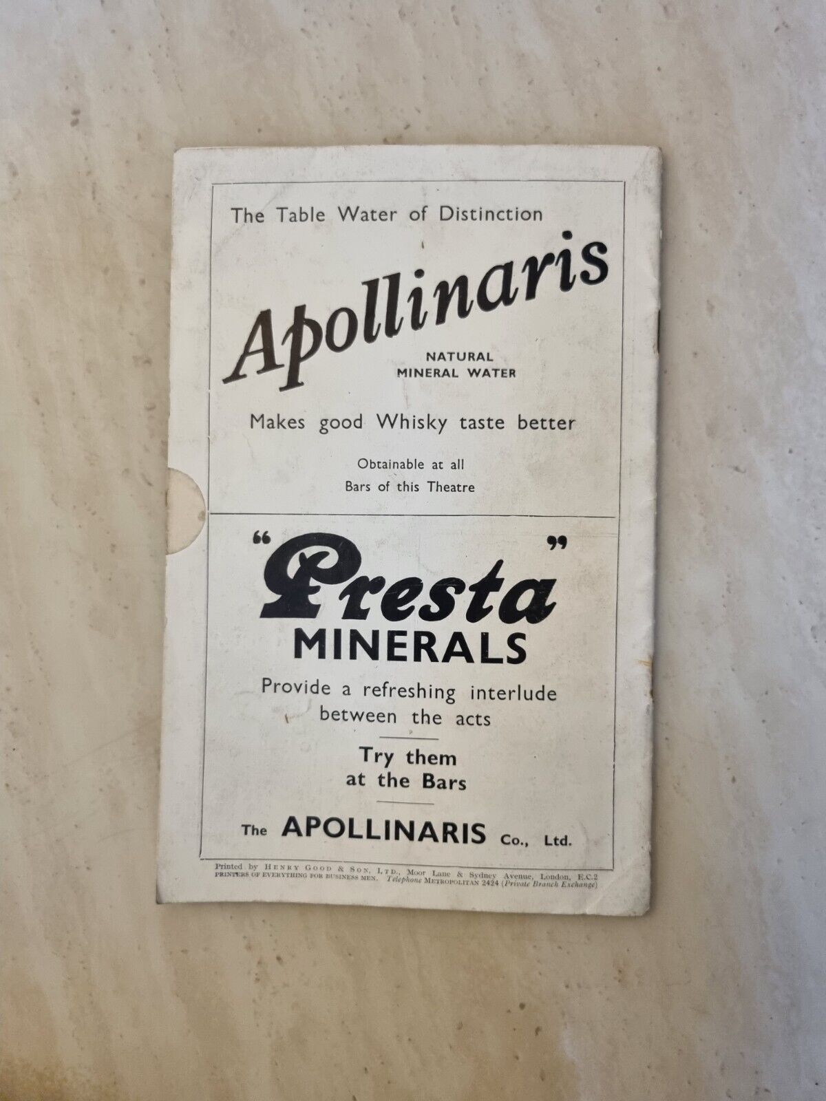 Seller note: This lovely Original Theatre programme staple has rusted otherwise remains in good condition for its age. Please see all the pictures as it forms part of the description.