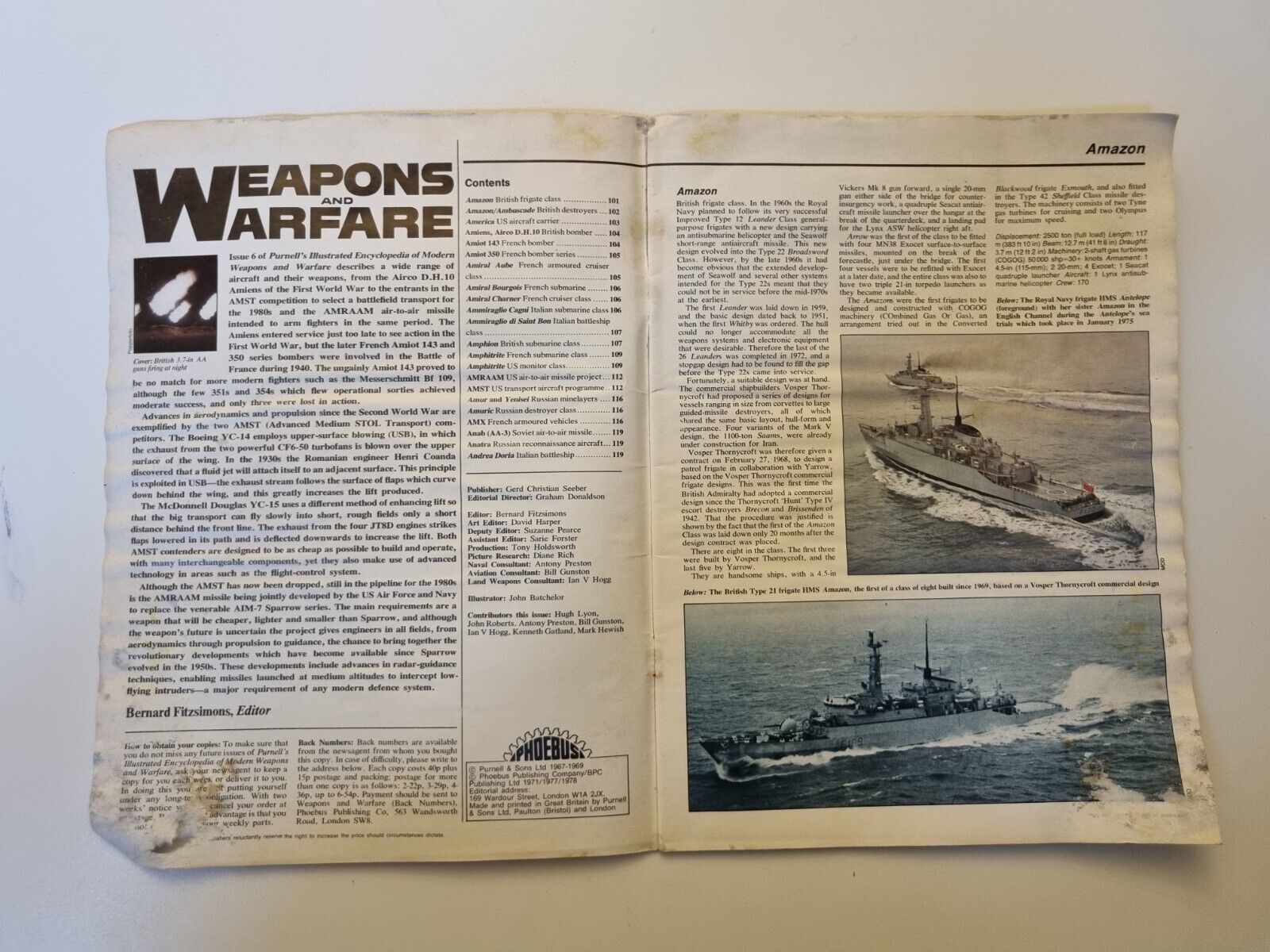 Seller note: You are purchasing Purnell's illustrated encyclopedia Weapons and Warfare Magazine. The magazine contains photos, diagrams, information of Military Weapons used in War. This lovely magazine as you can see in picture remains in poor condition due to water damage has creasing. Please see the picture as it forms part of the description. Please note you are purchasing the magazine ONLY any supplement or promotional items which was part of the original issue is not included.
