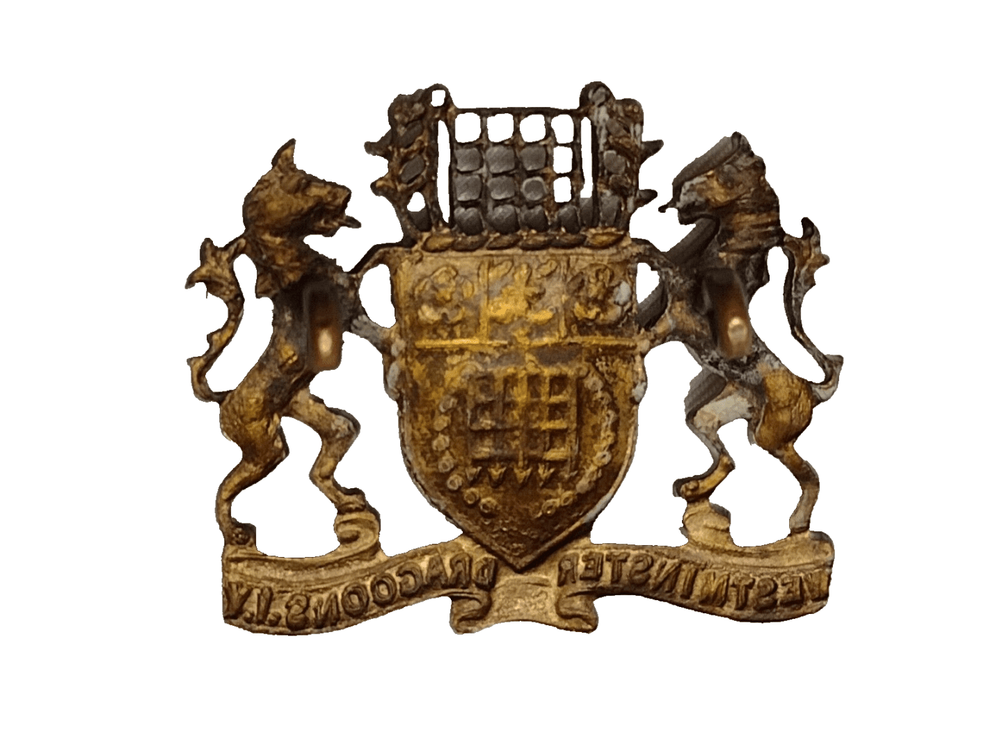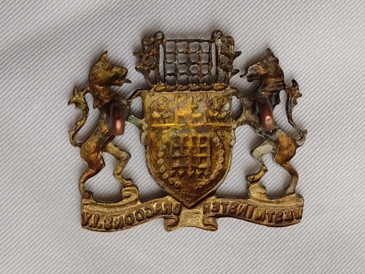 Westminster Dragoons Imperial Yeoman Cap Badge Brass Economy 2Lug Fretted Antiqu