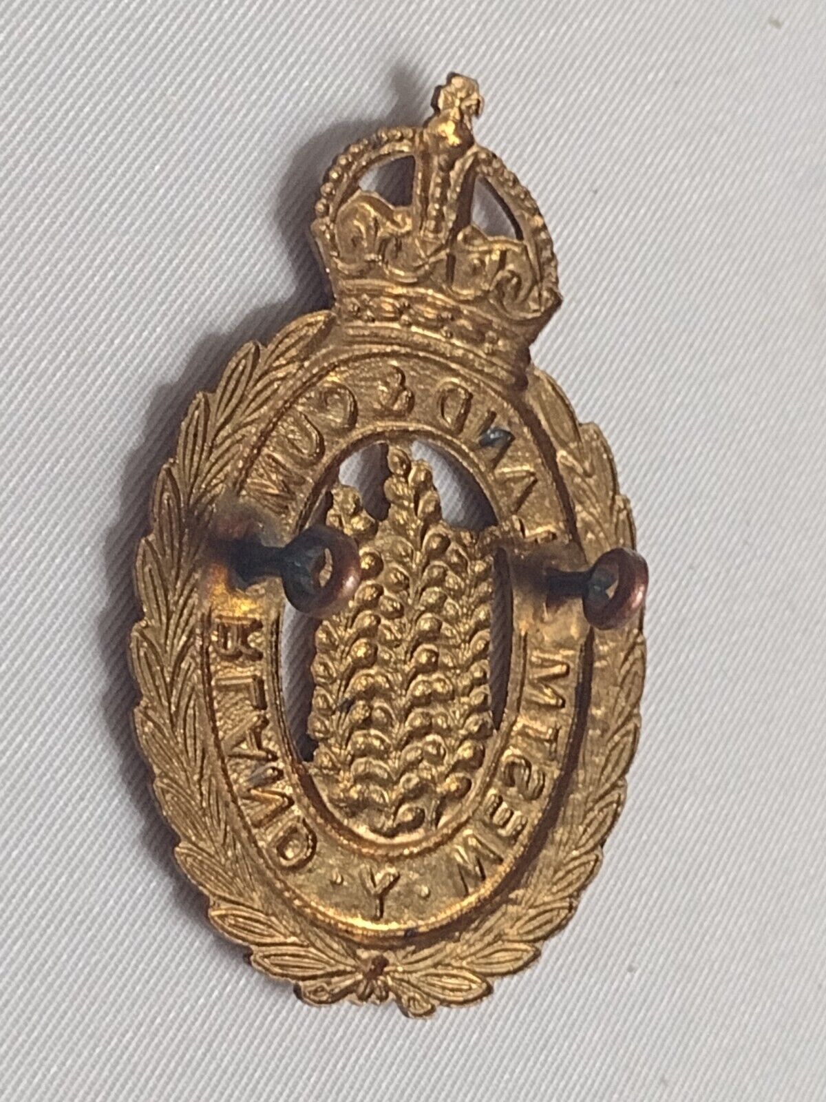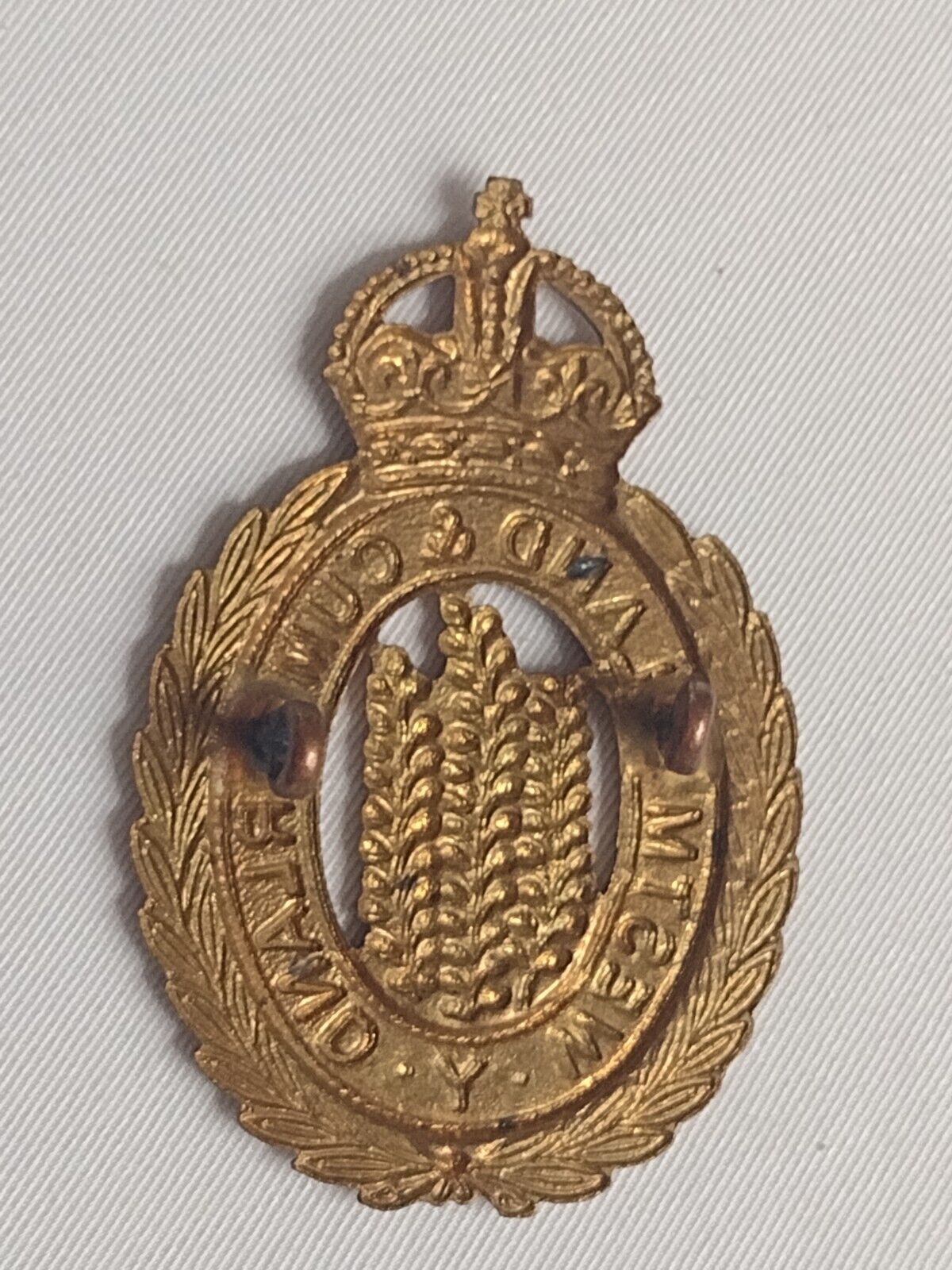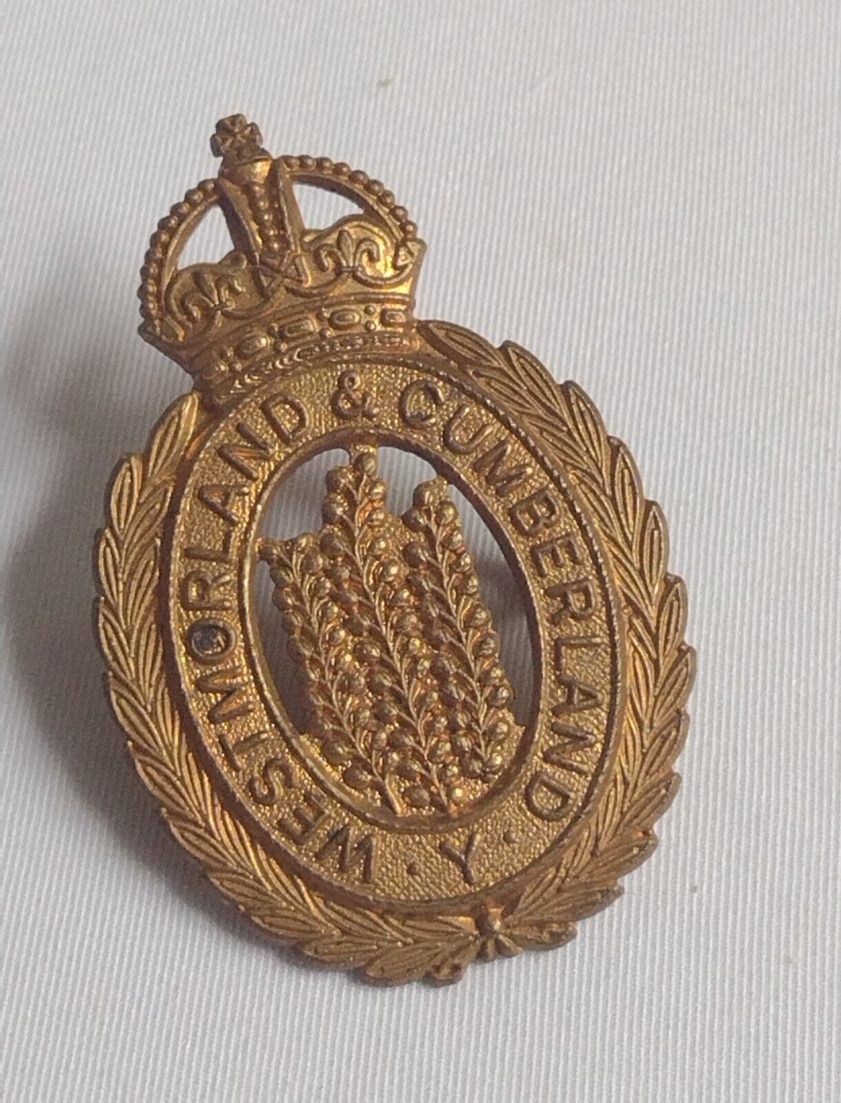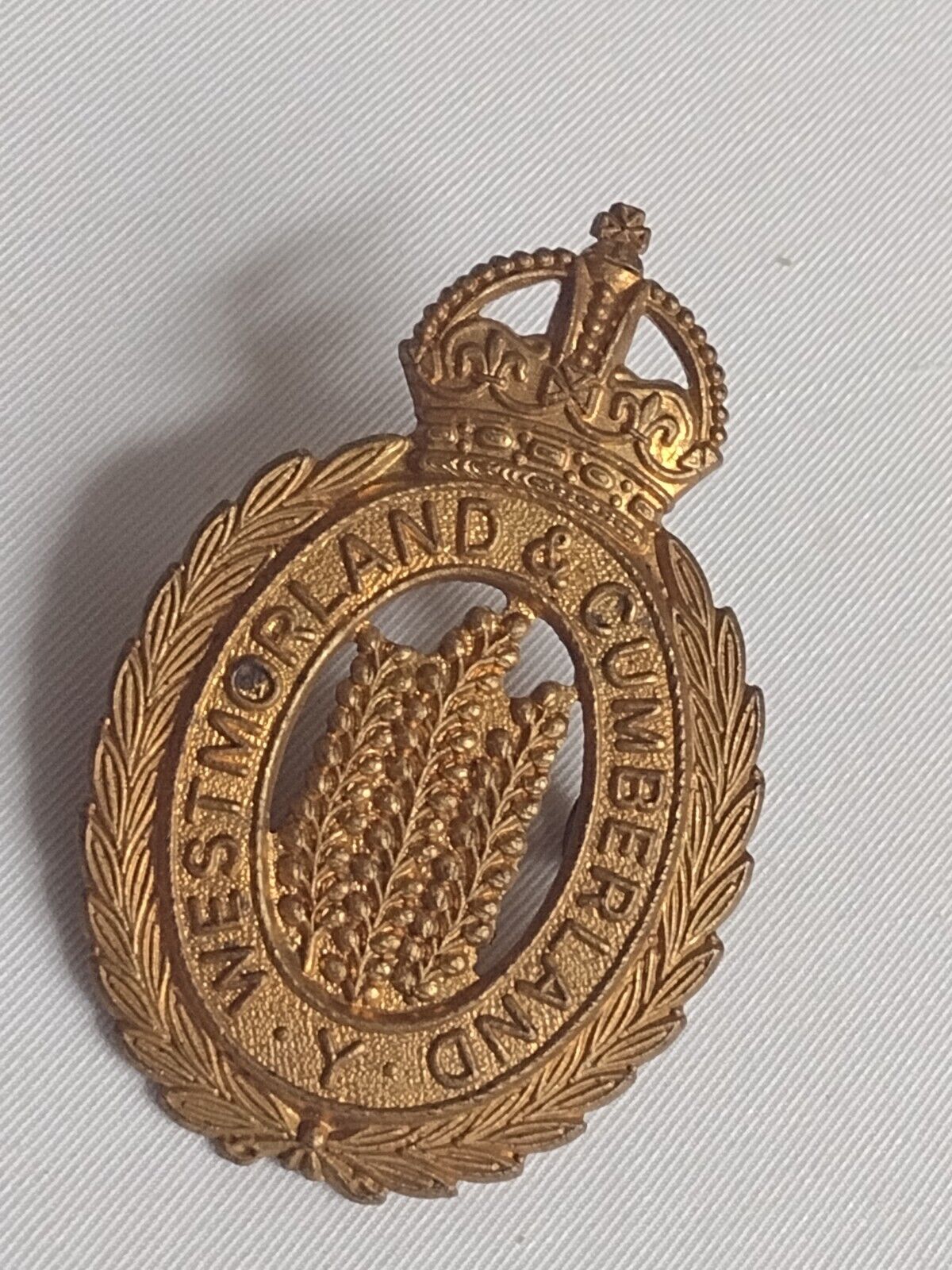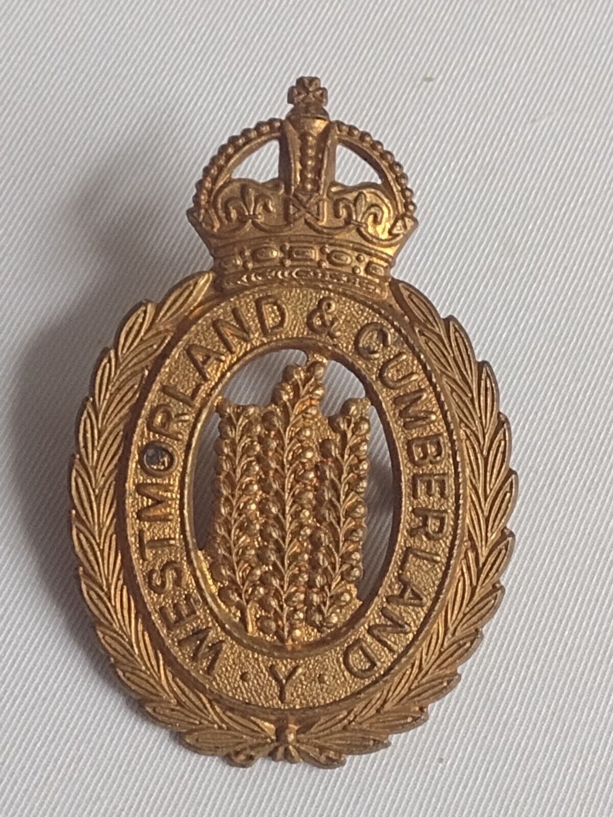 Westmorland & Cumberland Yeomanry Cap Badge KC All Brass 2 Lugs 56mm Vintage