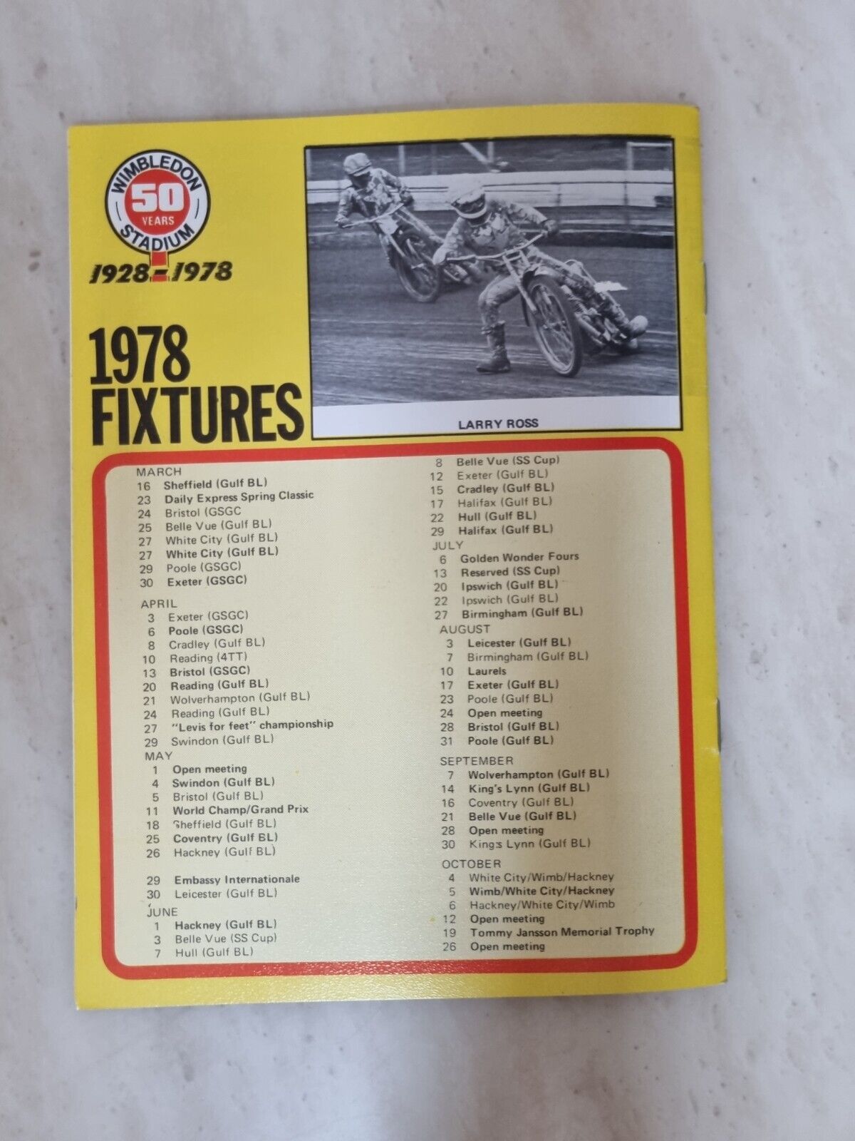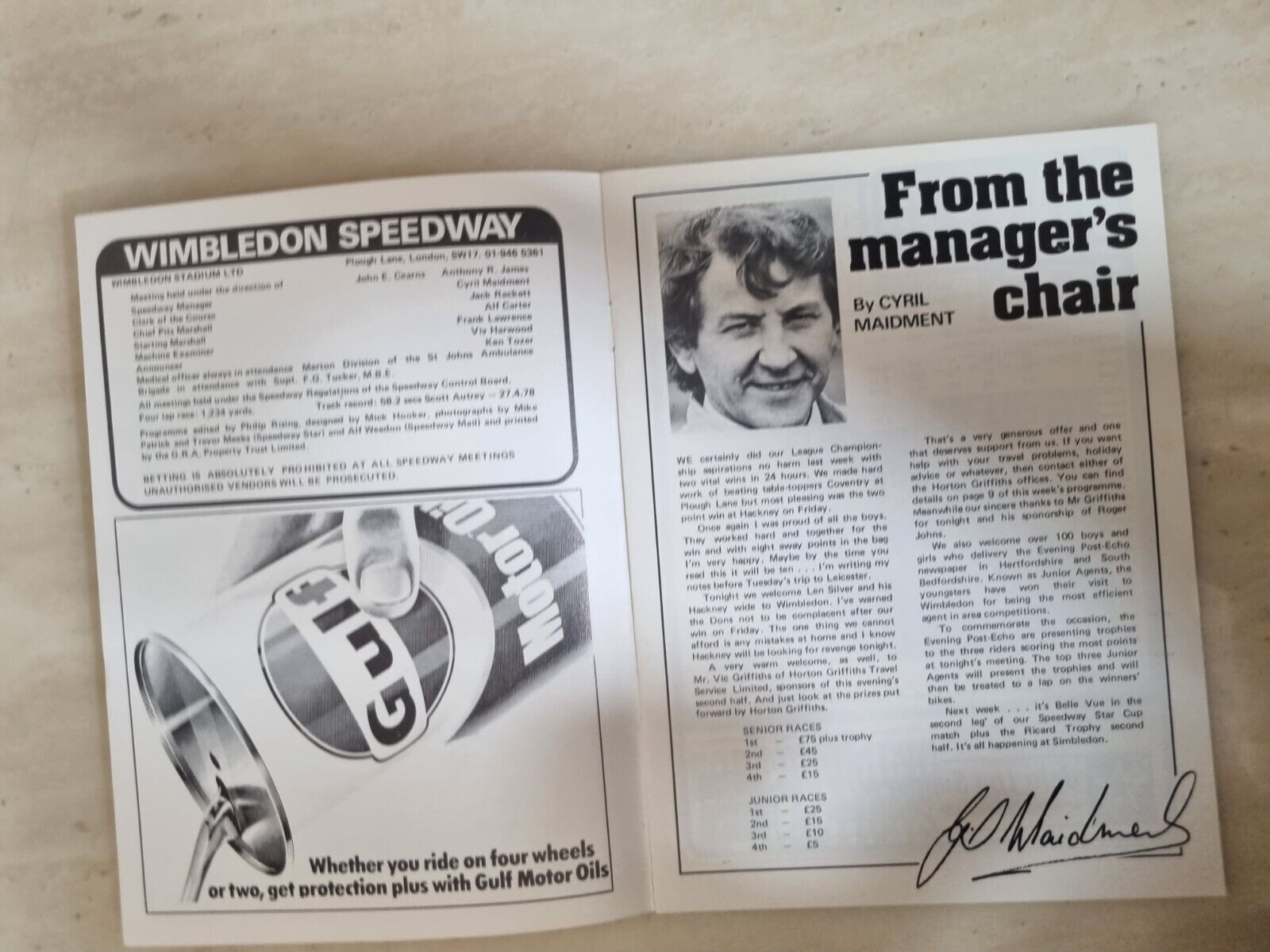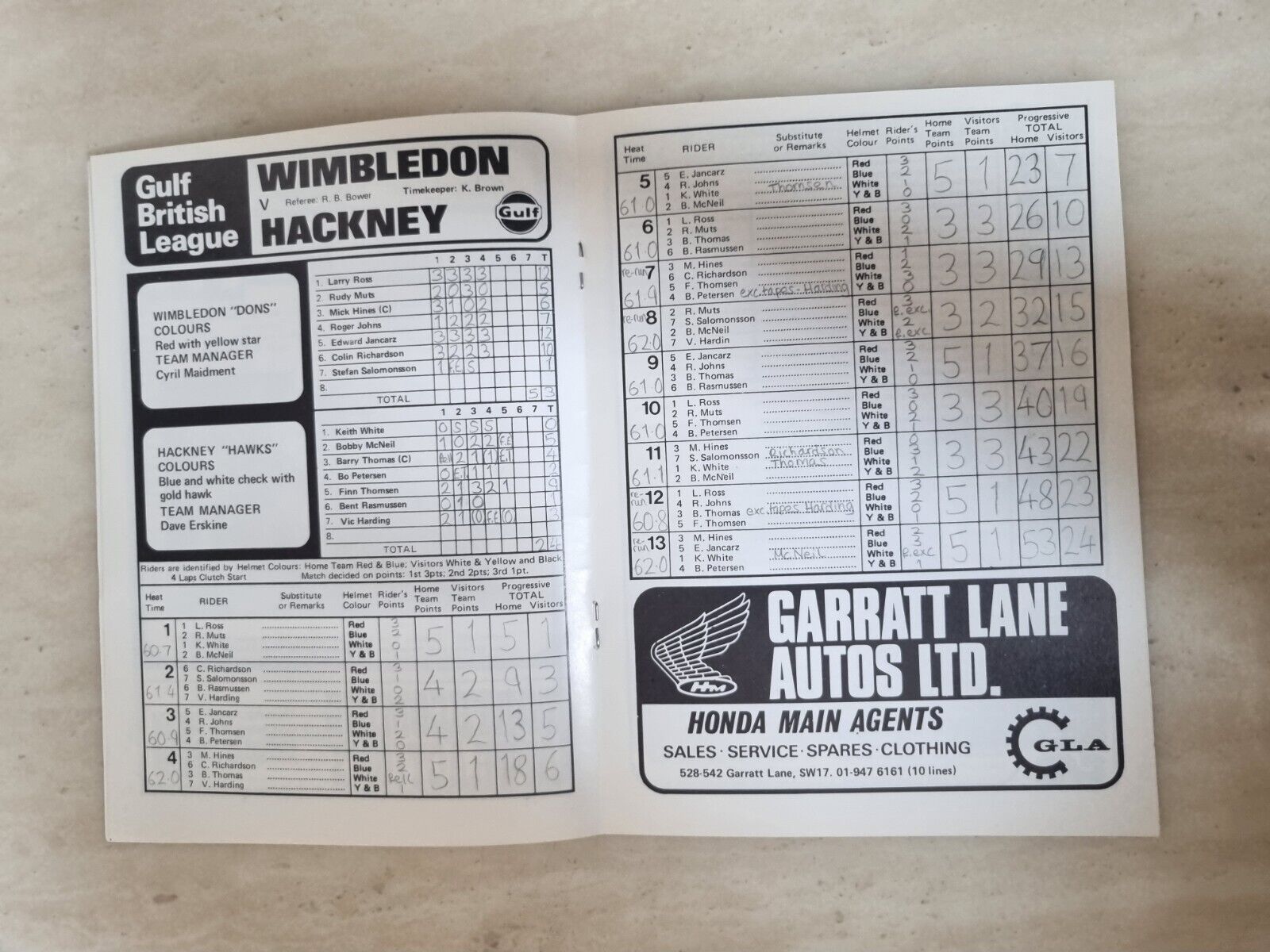 Wimbledon Speedway Gulf British League – Wimbledon v Hackney 1st June 1978