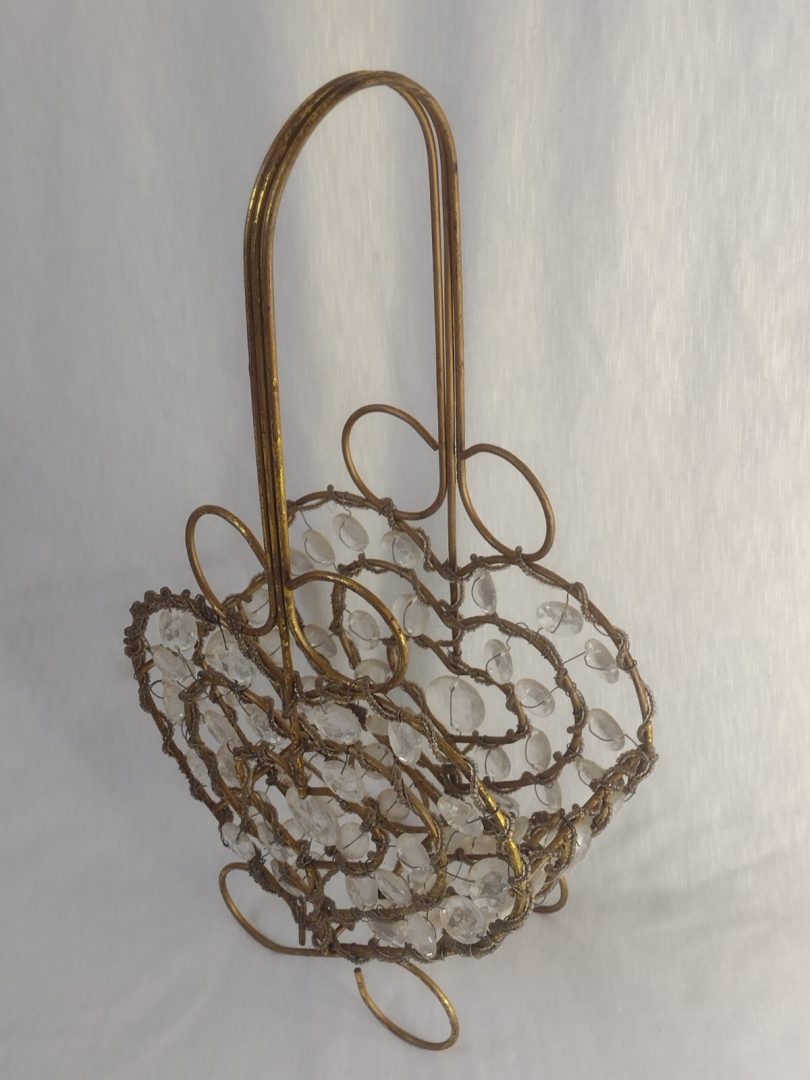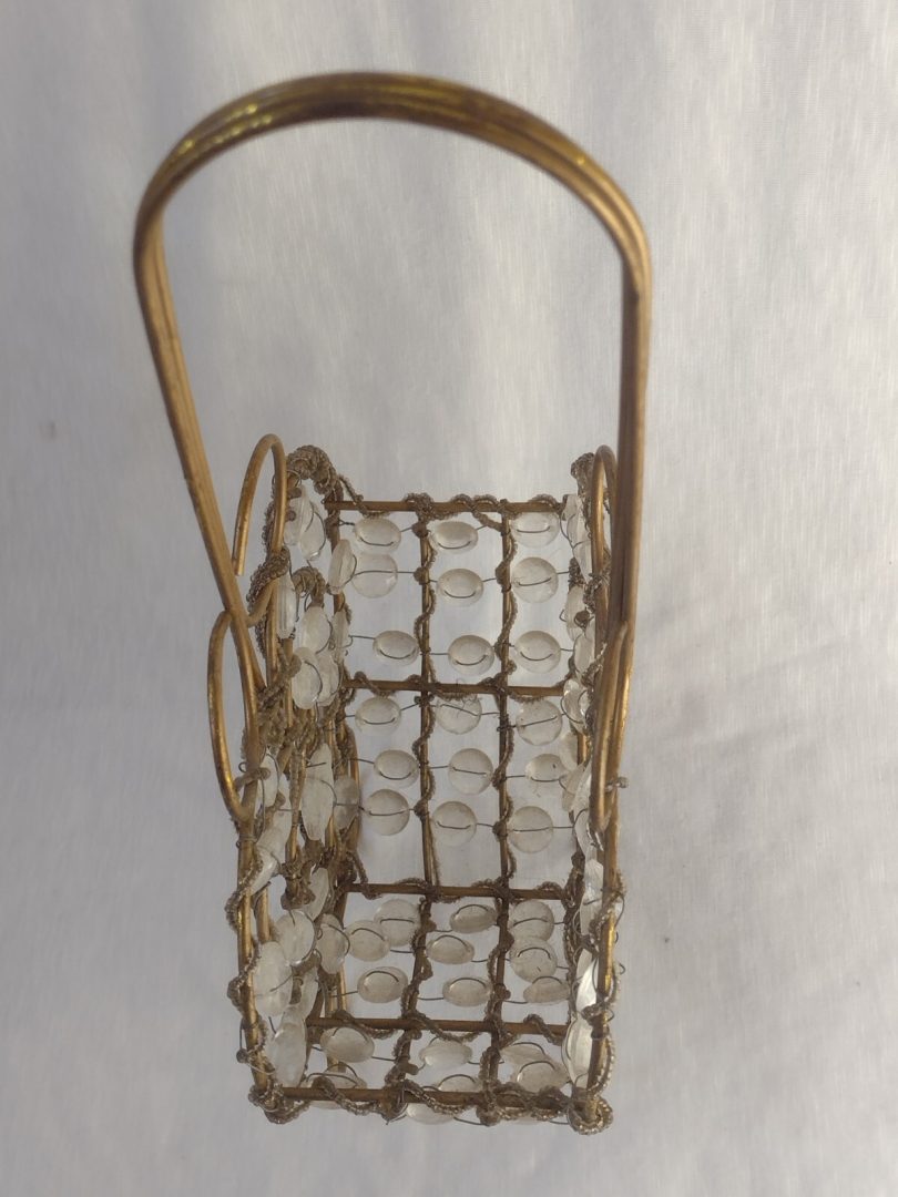 Wine Bottle Holder Heart Design Gold Tone Metal & Artificial Braid 33cm Vintage