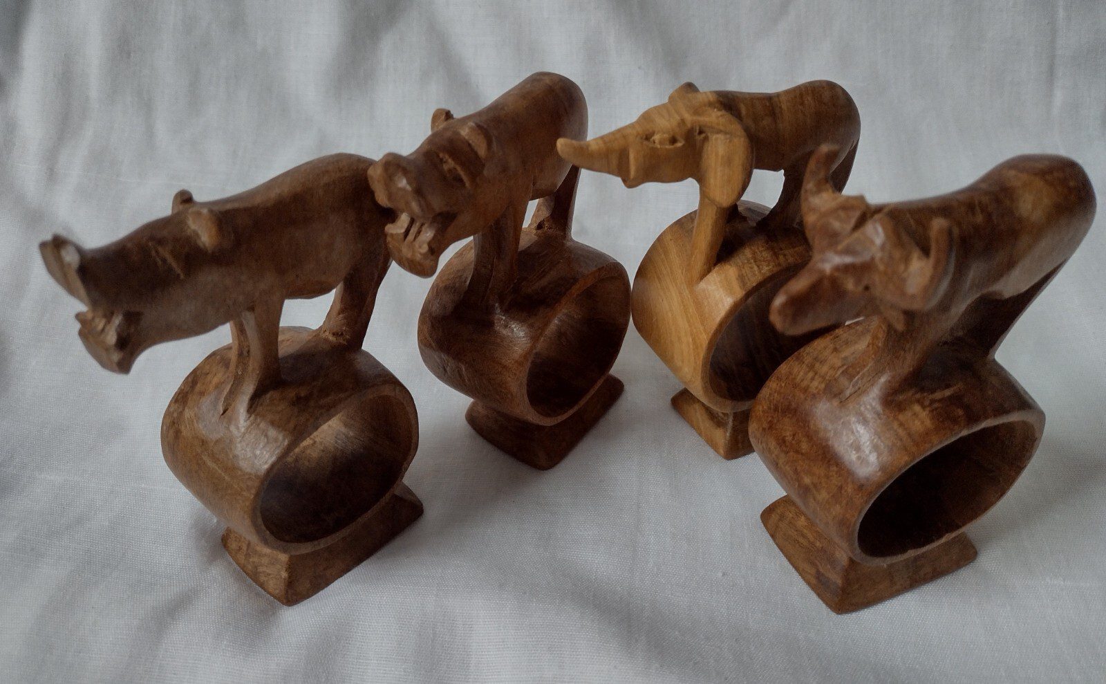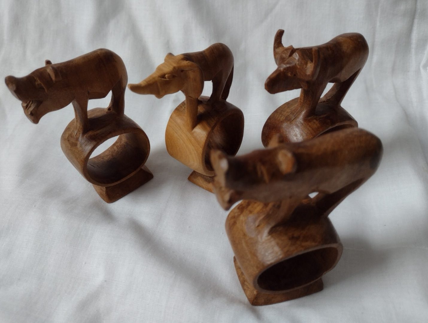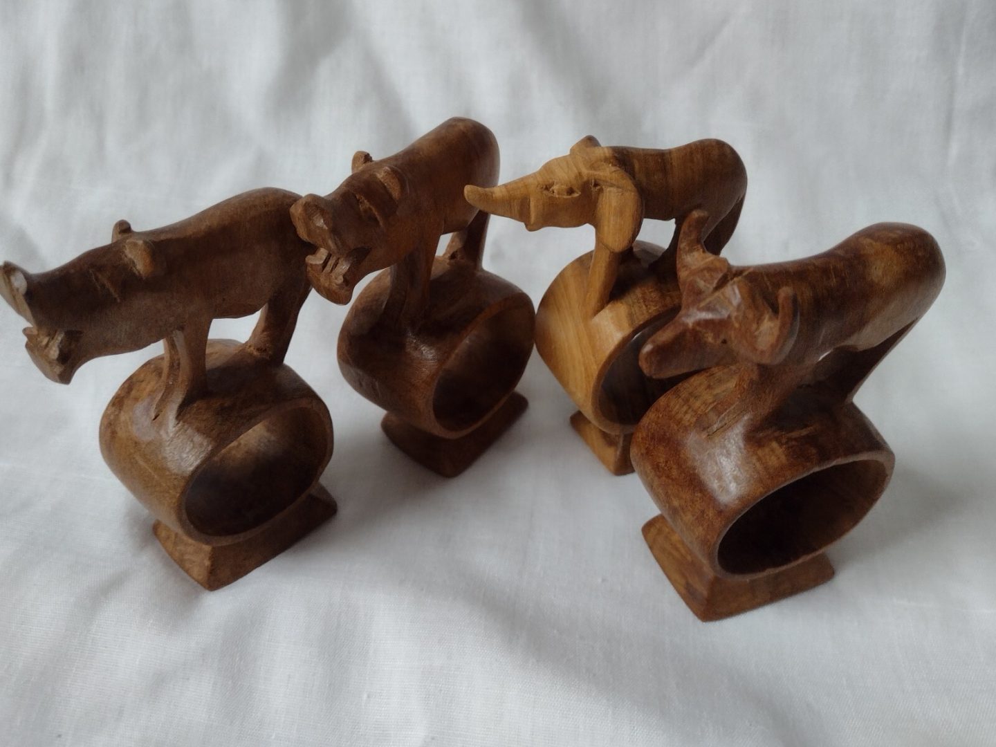 Wooden Napkin Holder Ring Hand Carved made in Kenya Africa set of 4 Vintage