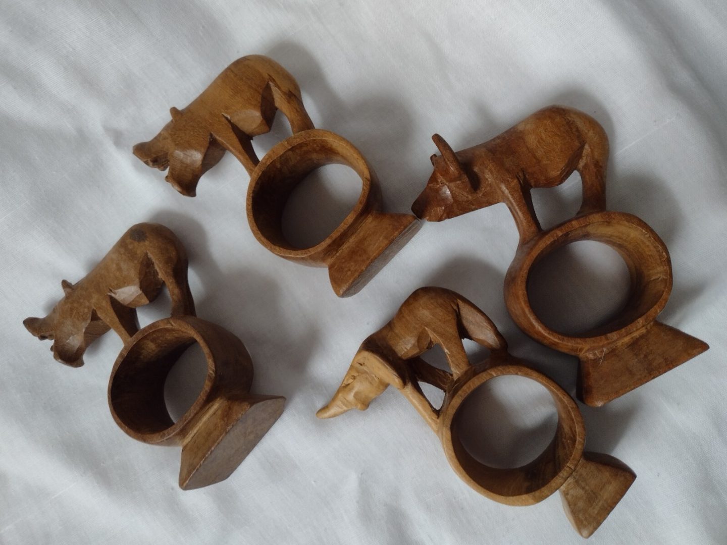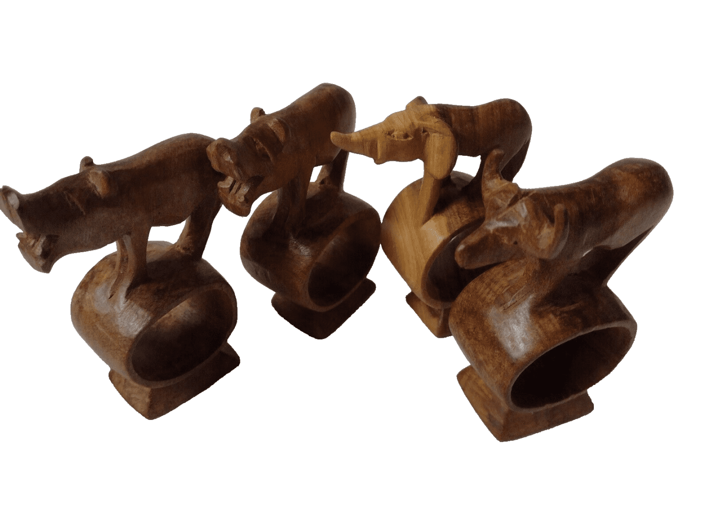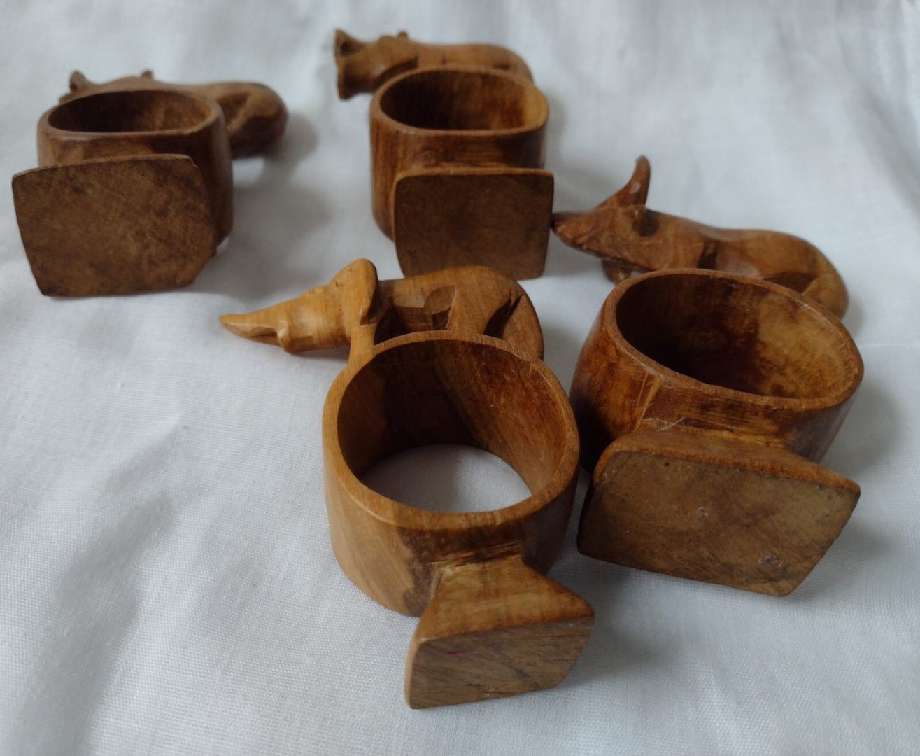 Wooden Napkin Holder Ring Hand Carved made in Kenya Africa set of 4 Vintage