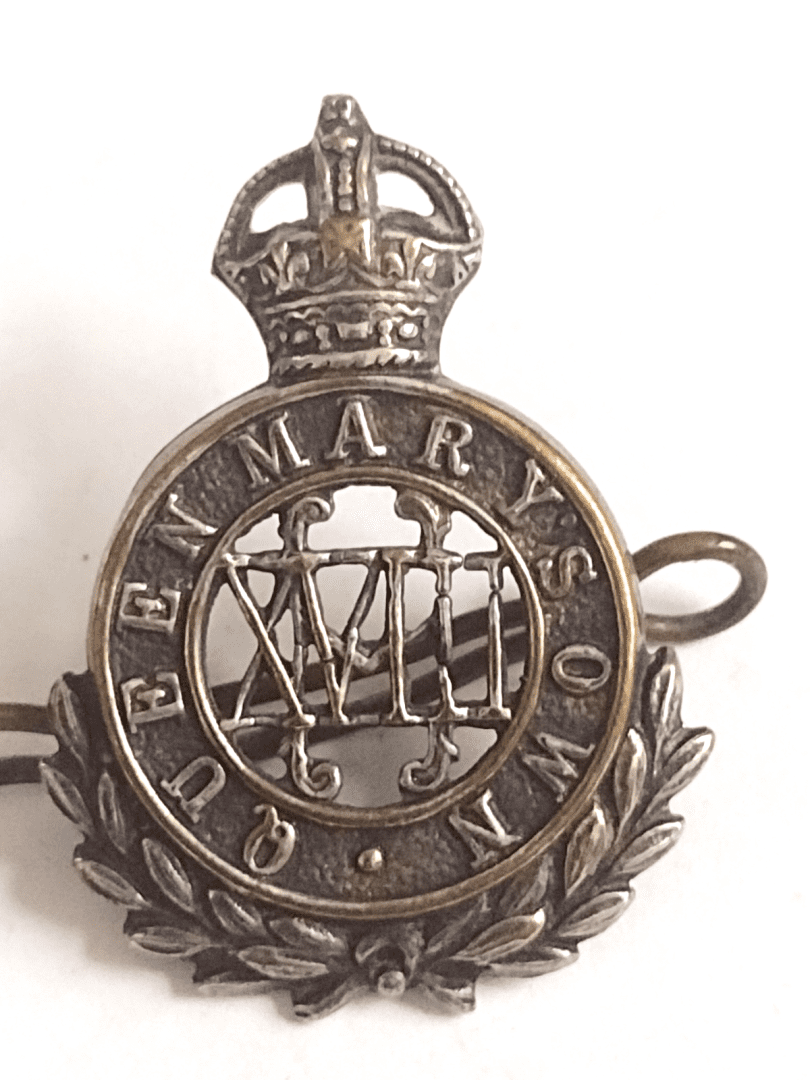 WW1 18th (Queen Mary’s Own) Royal Hussars Cap Badge KC White Metal – Original