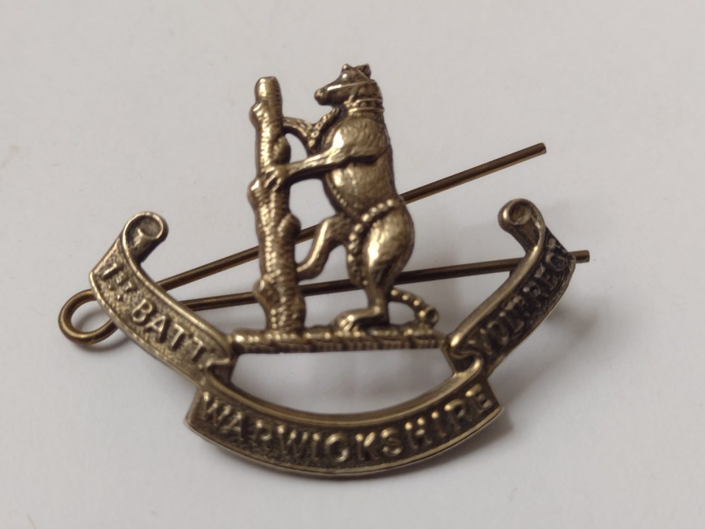 WW1 1st Battalion Warwickshire Volunteer Regiment Cap Badge White Metal Original
