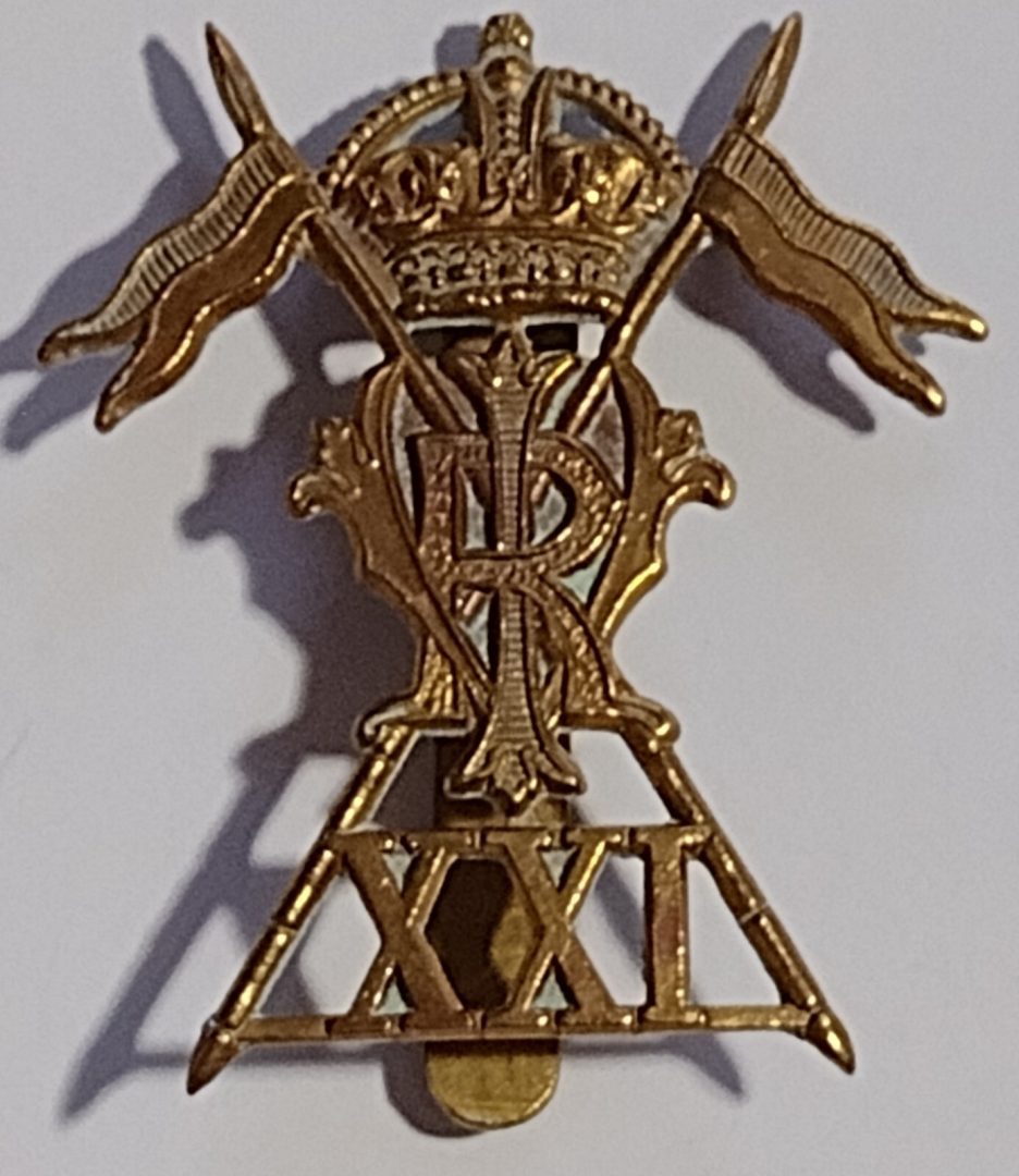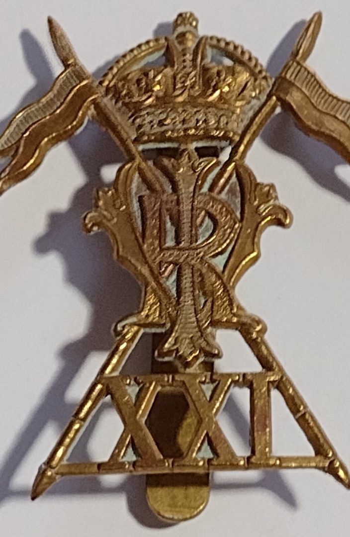 WW1 21st Lancers Cavalry Original Cap Badge Kc Brass Economy Slider Antique