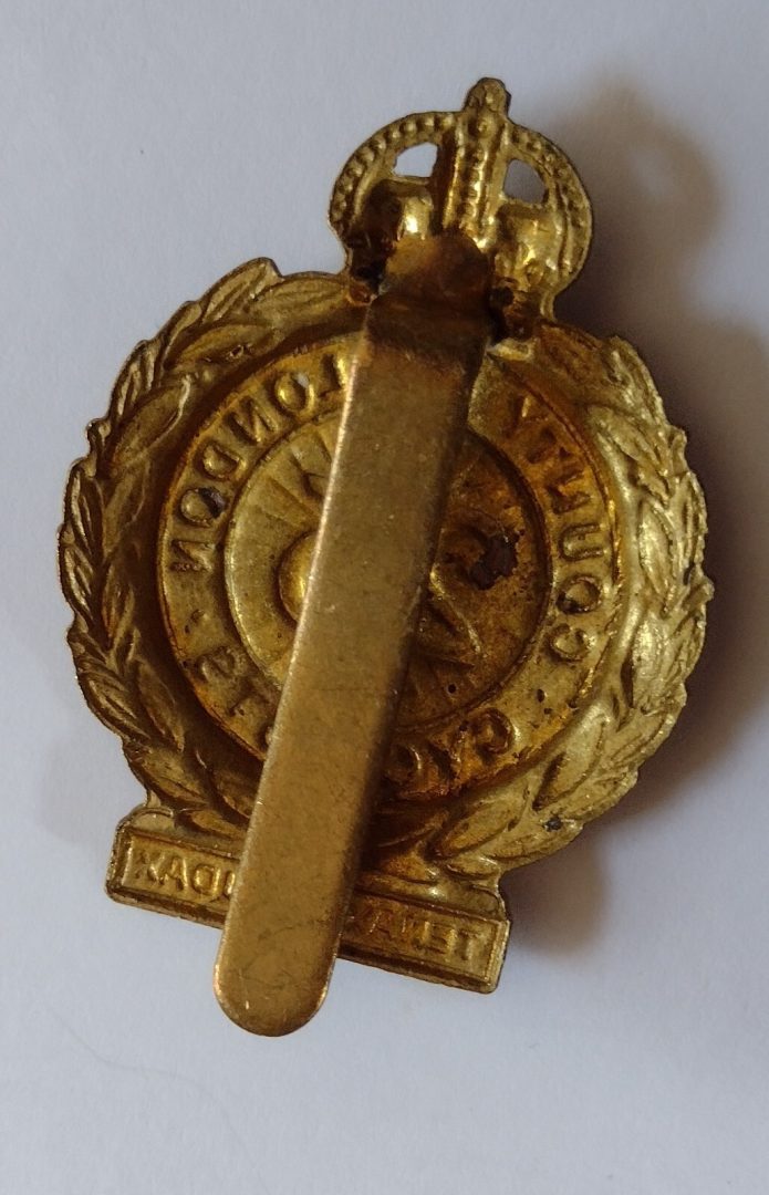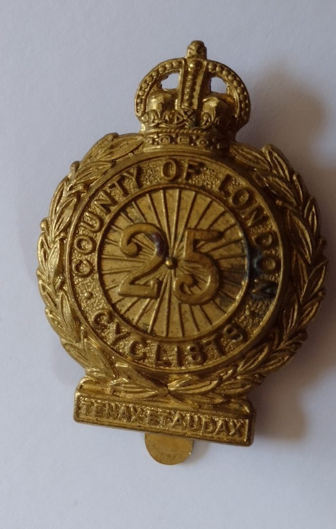 WW1 25th County of London Cyclist Battalion Cap Badge Brass Slider Antique Org