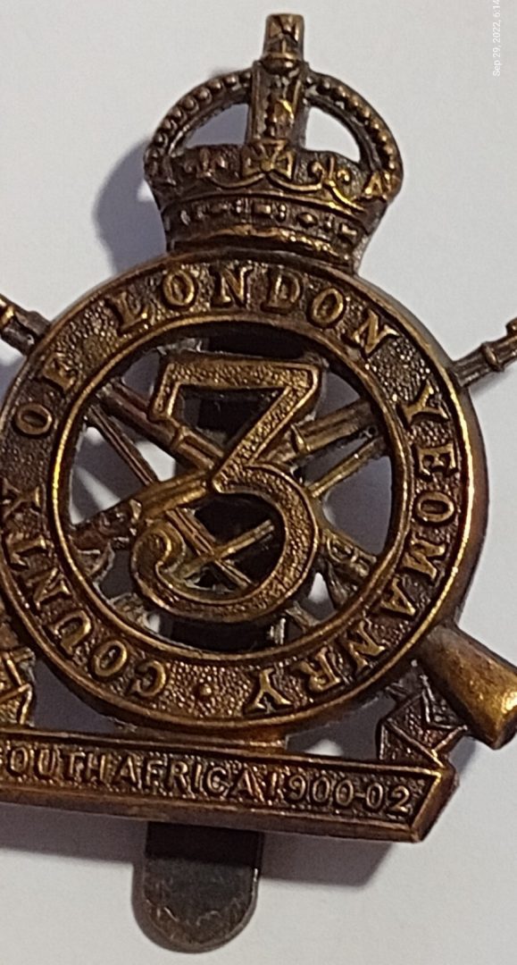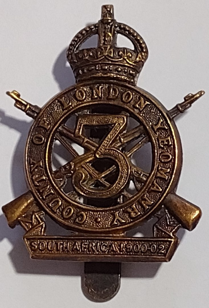 WW1 3rd County of London Yeomanry Cap Badge KC All Bass Gaunt Slider Antique Org