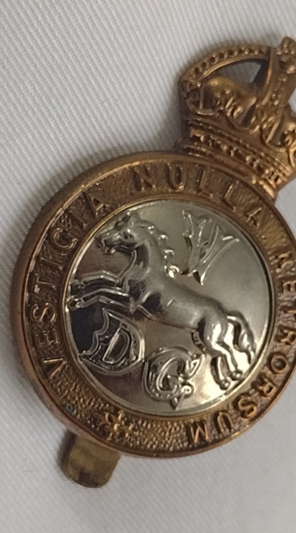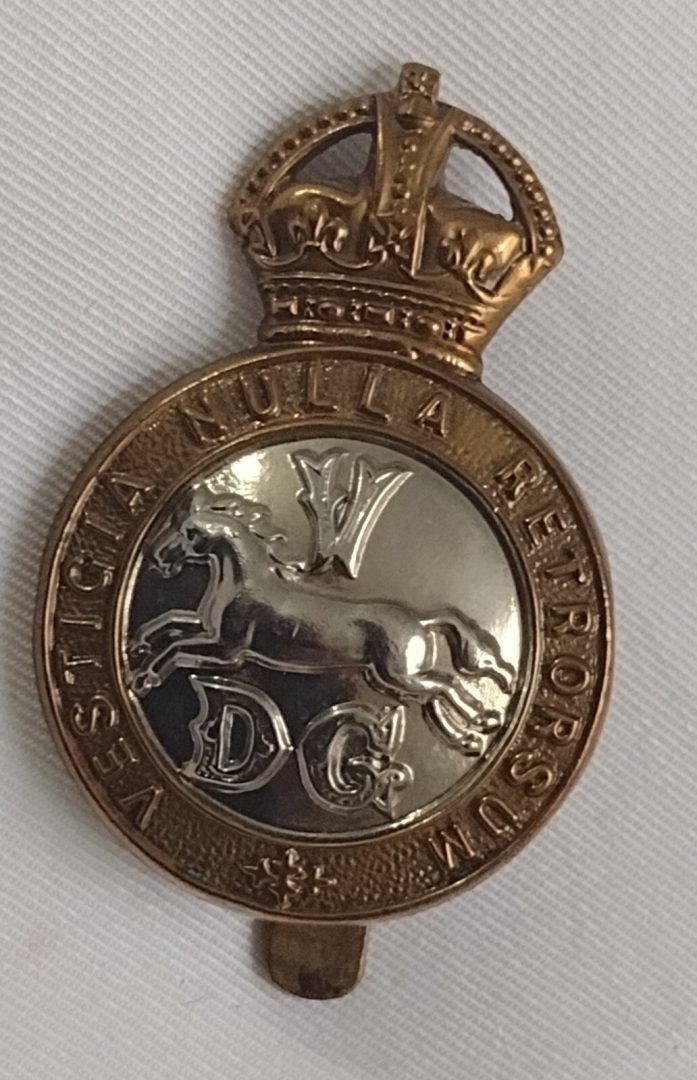 WW1 5th Dragoon Guards Cap Badge KC Bi-Metal Slider ANTIQUE Original
