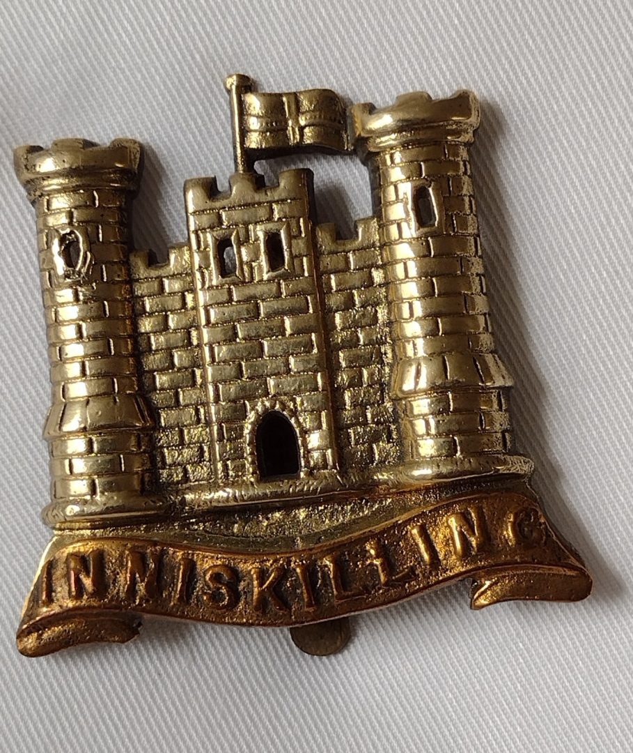WW1 6th Inniskilling Dragoon Guards Cap Badge Cast Bi-Metal Slider ANTIQUE Org