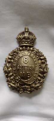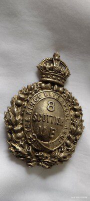 WW1 8th Scottish Batt King’s Liverpool Regiment Cap Badge White Metal Original