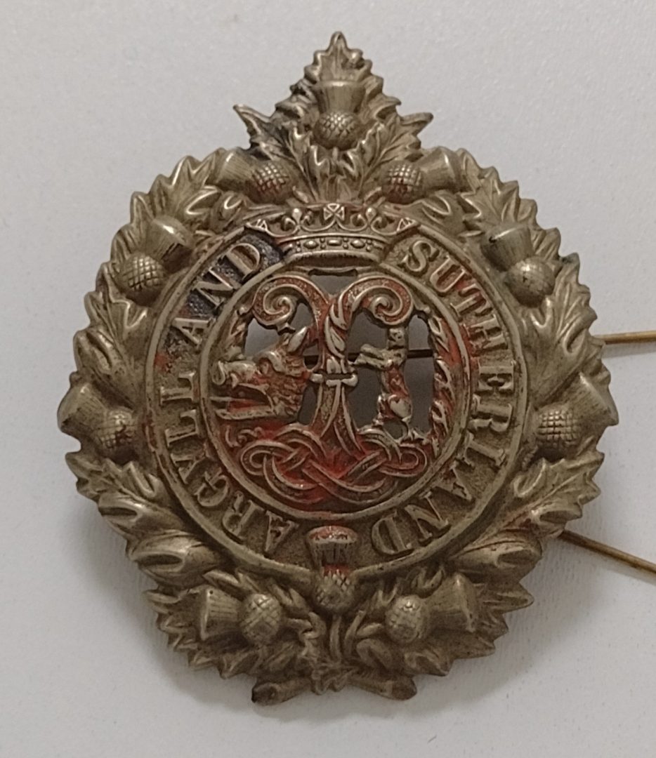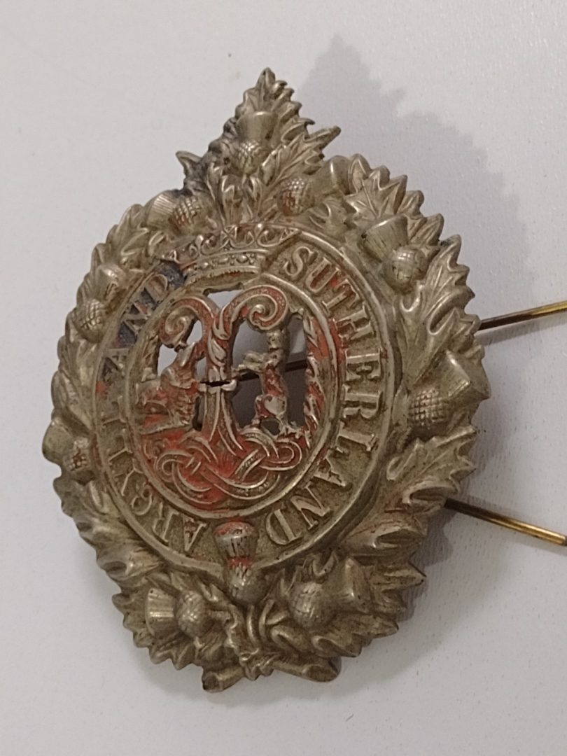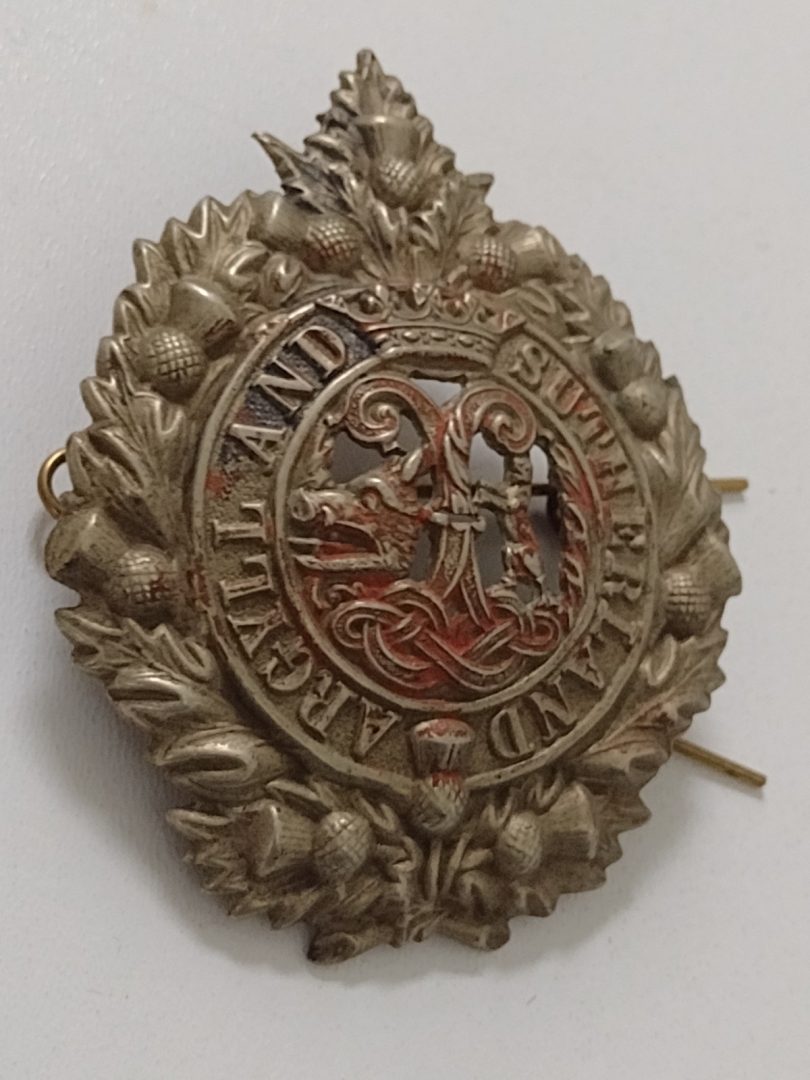 WW1 Argyll and Sutherland Highlanders Cap Badge Curved Issued 2Lugs – Original