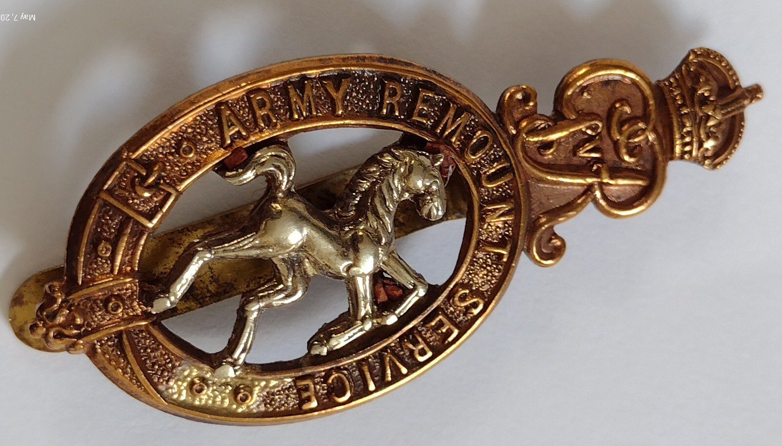 WW1 Army Remount Service Cap Badge GV 1914-1918 Bi-Metal Slider ANTIQUE Original