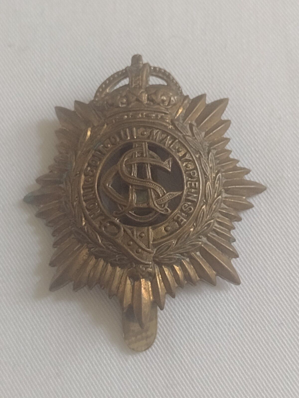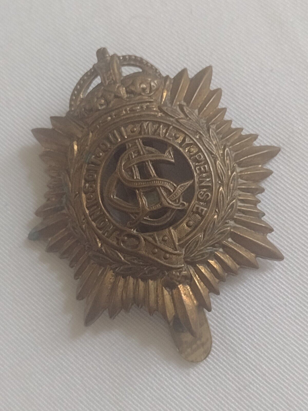 WW1 Army Service Corps Cap Badge KC 1901-19 Era Brass Economy 43mm Antique Org