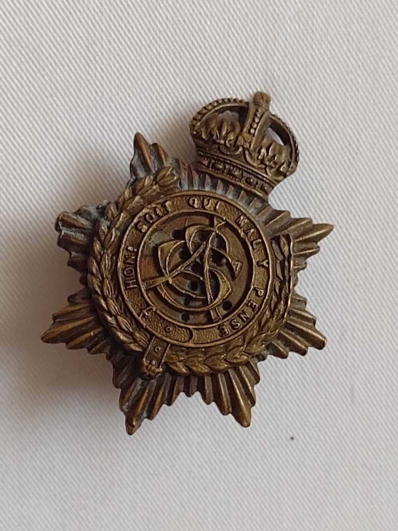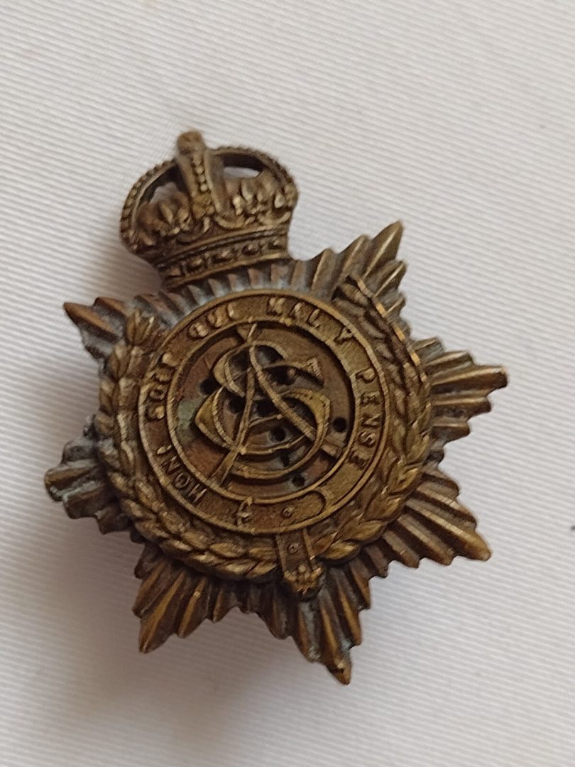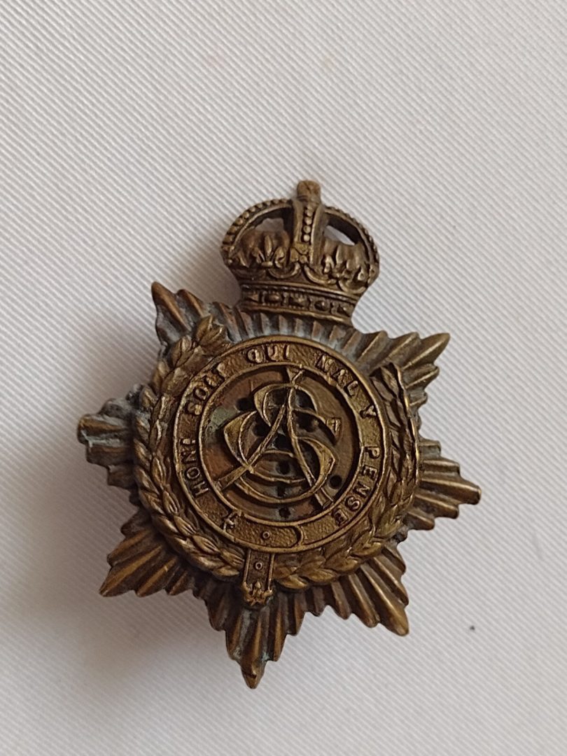 WW1 Army Service Corps Cap Badge KC Bronze 2 Parts Joined Antique Original