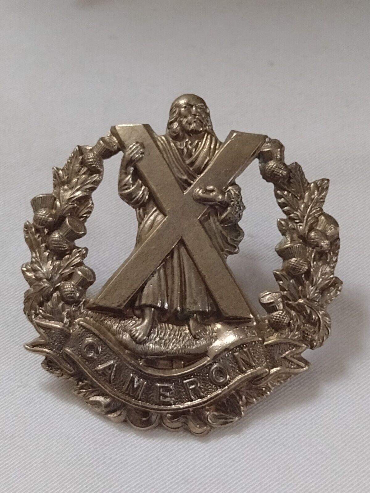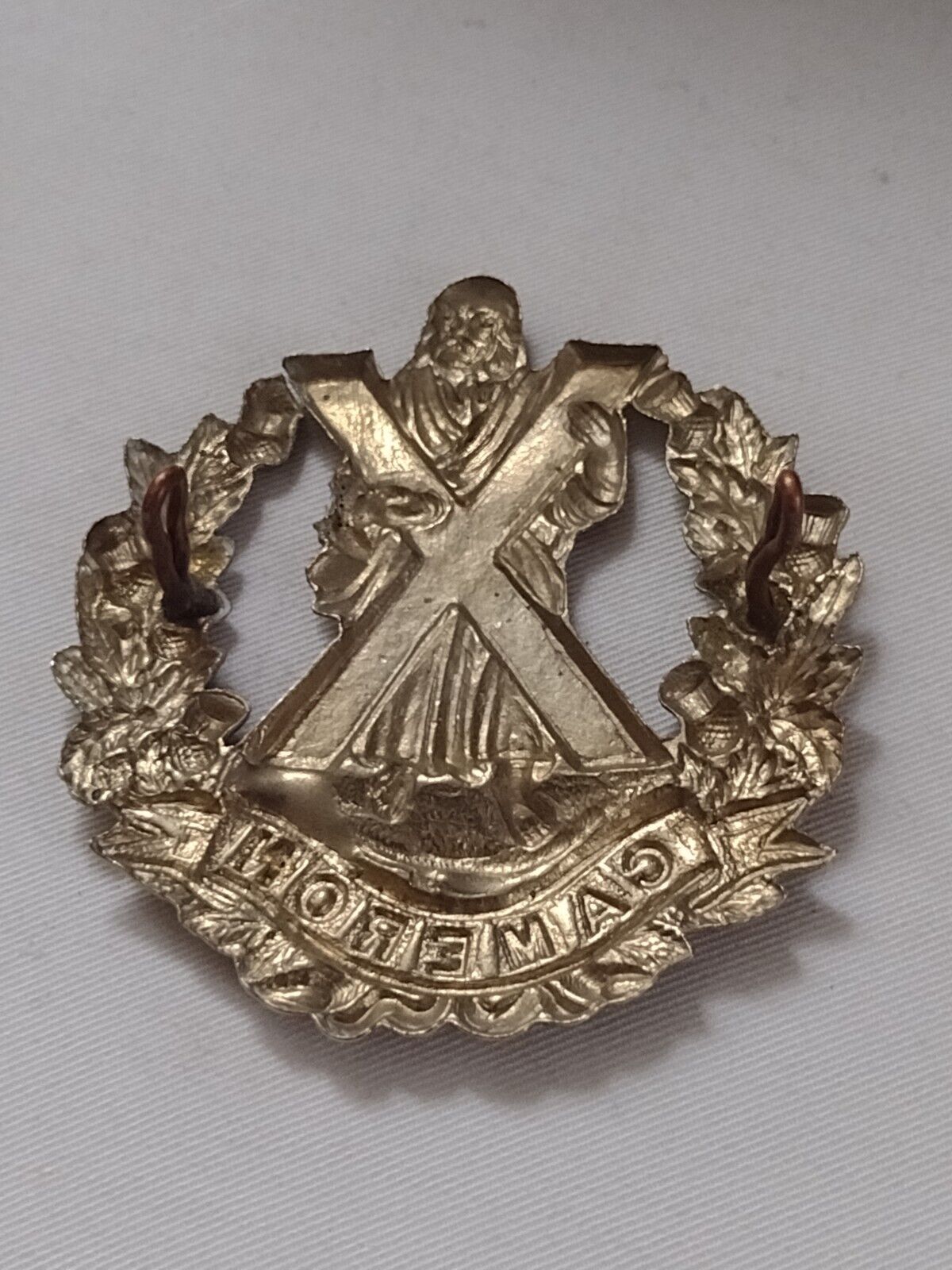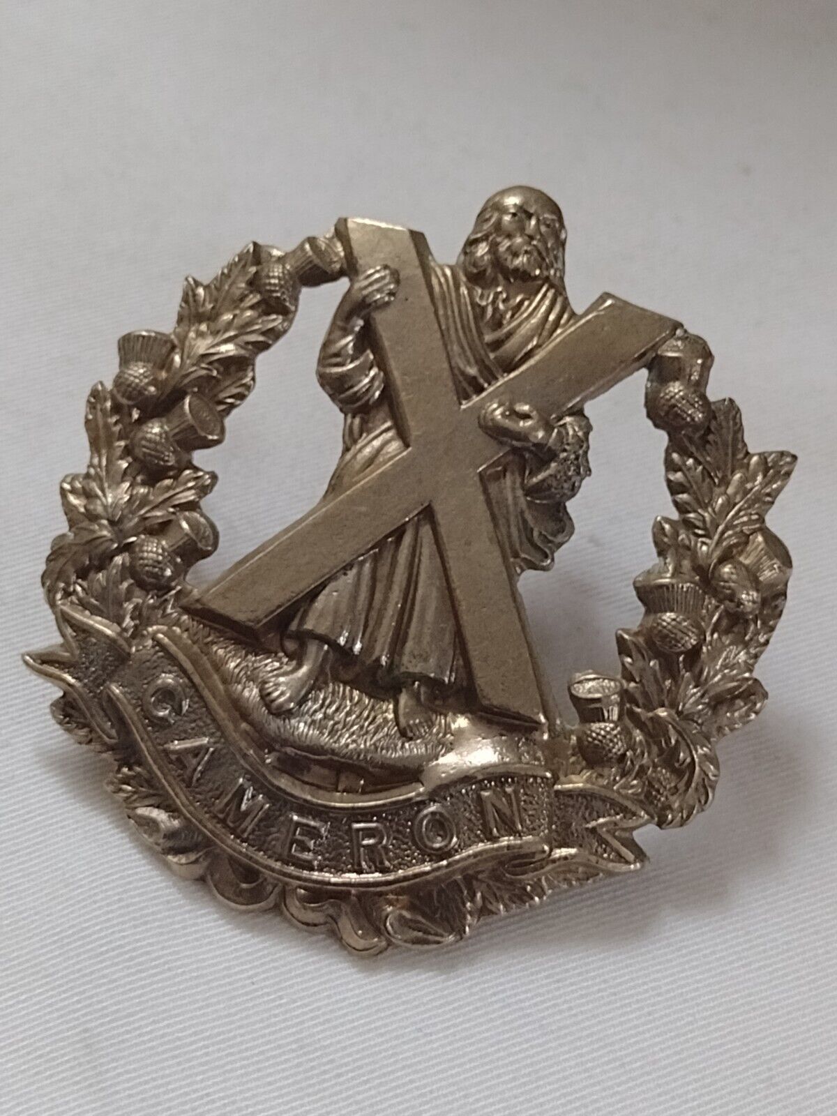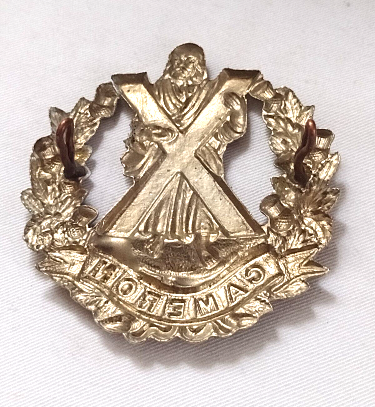 WW1 Cameron Highlanders Cap Badge 2 Lugs White Metal 60mm Antique Org