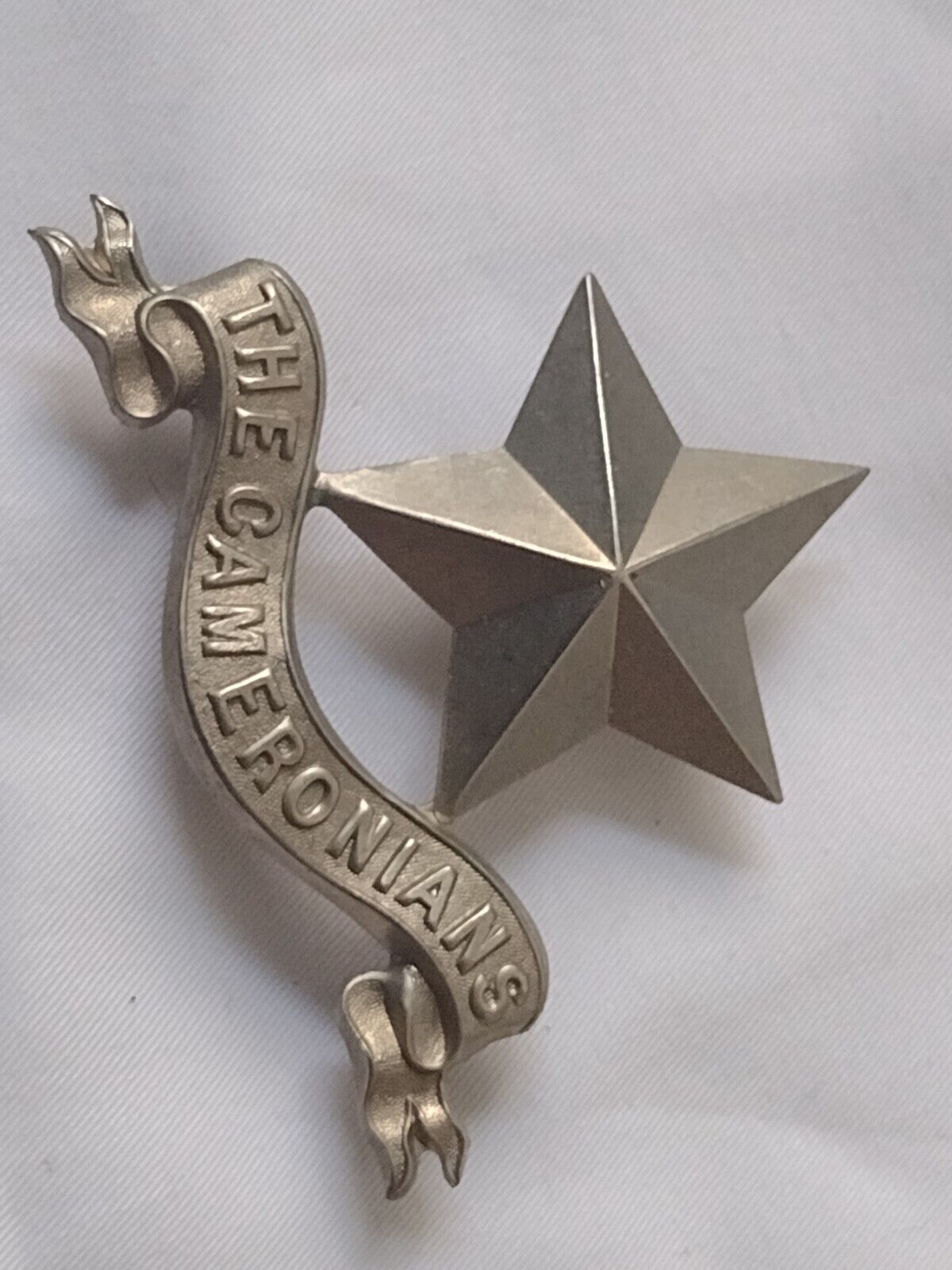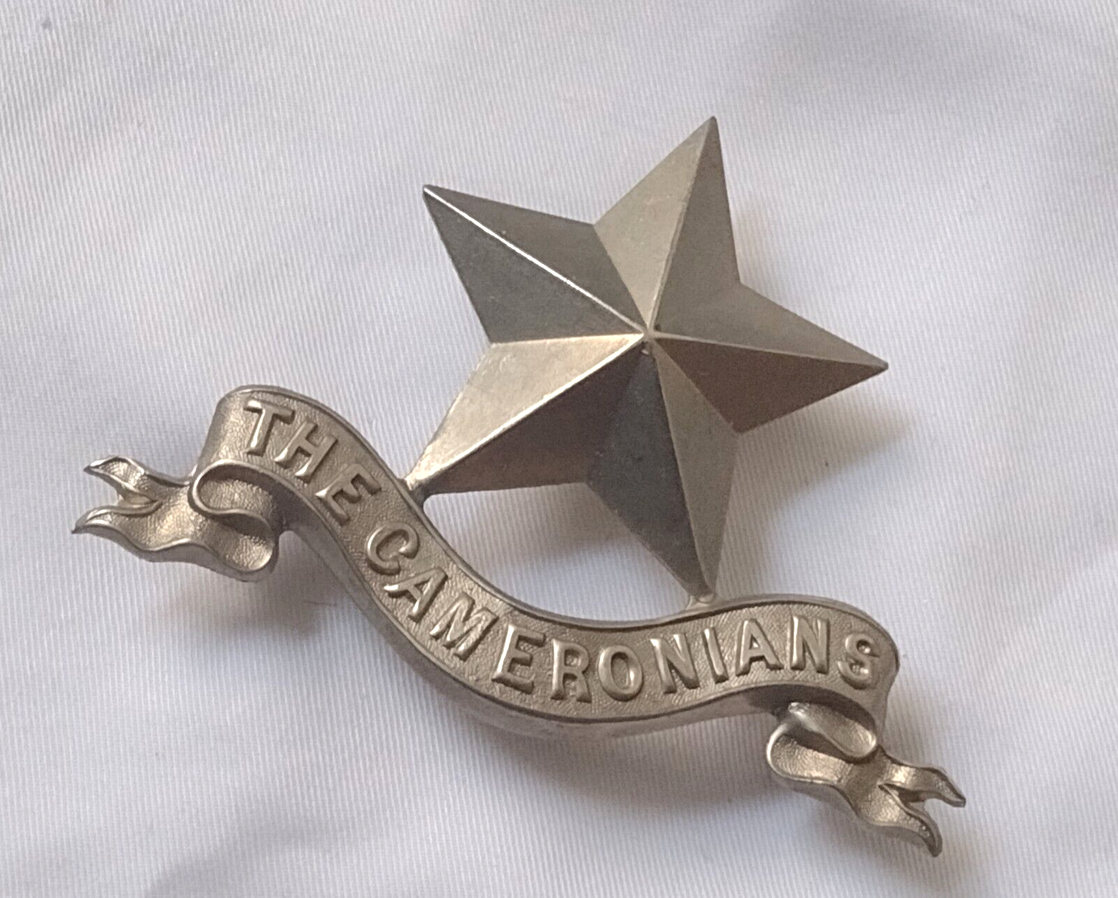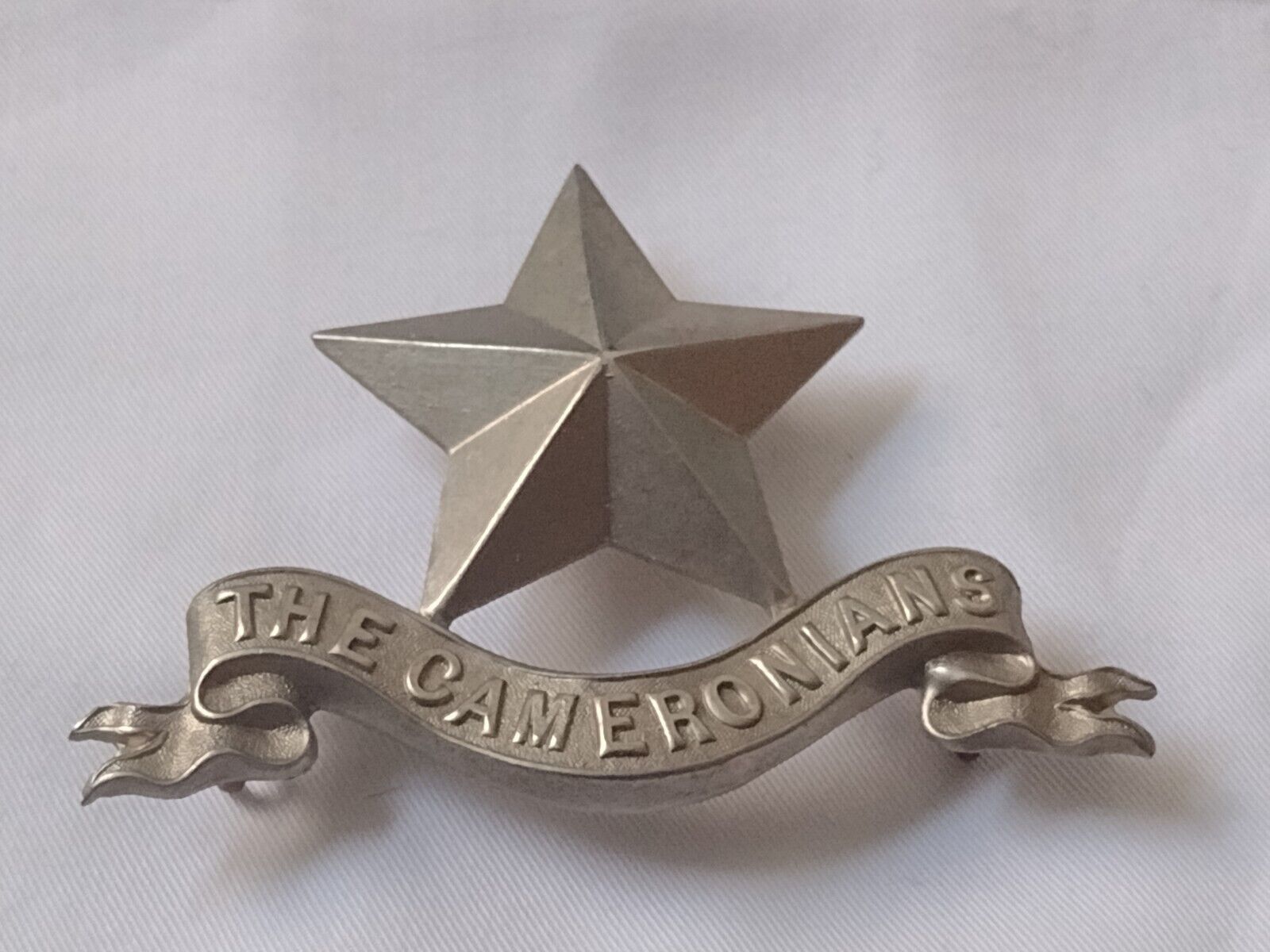 WW1 Cameronians Scottish Rifles Pipers Glengarry Badge White Metal 3Lugs Antique