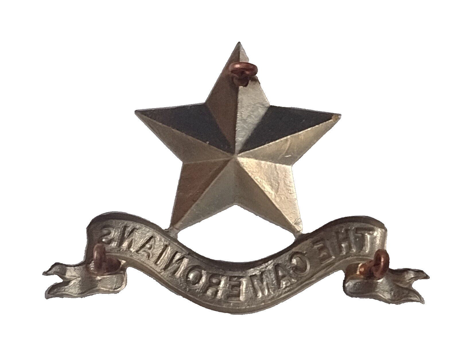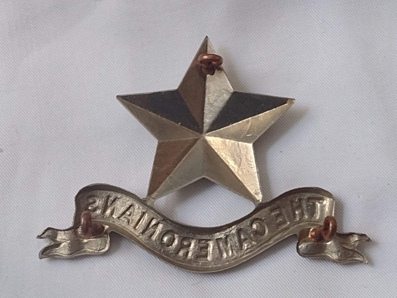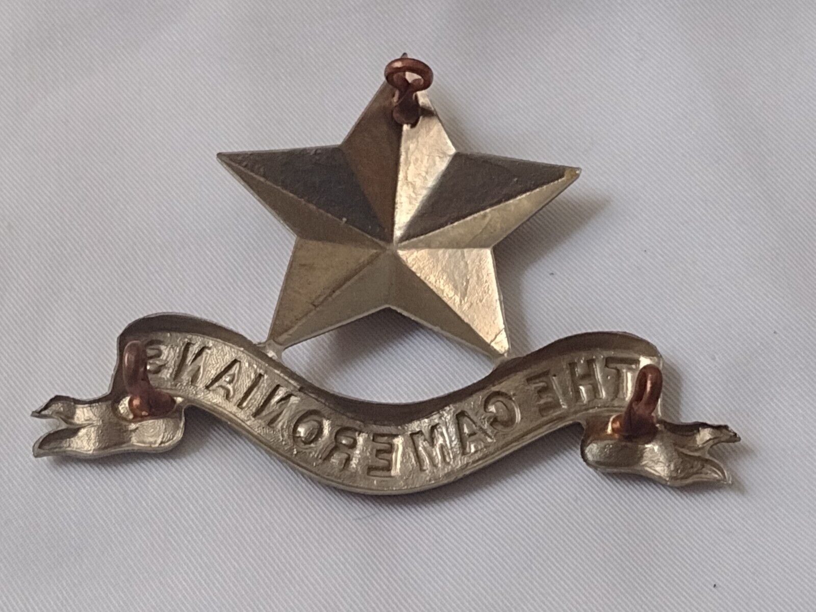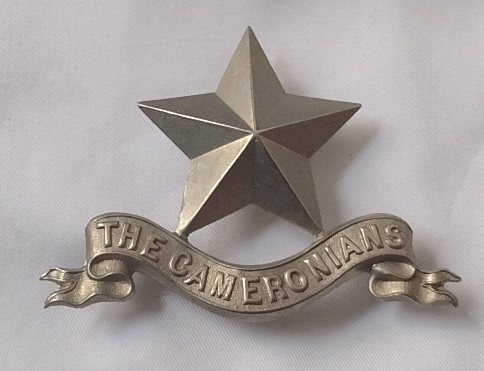 WW1 Cameronians Scottish Rifles Pipers Glengarry Badge White Metal 3Lugs Antique