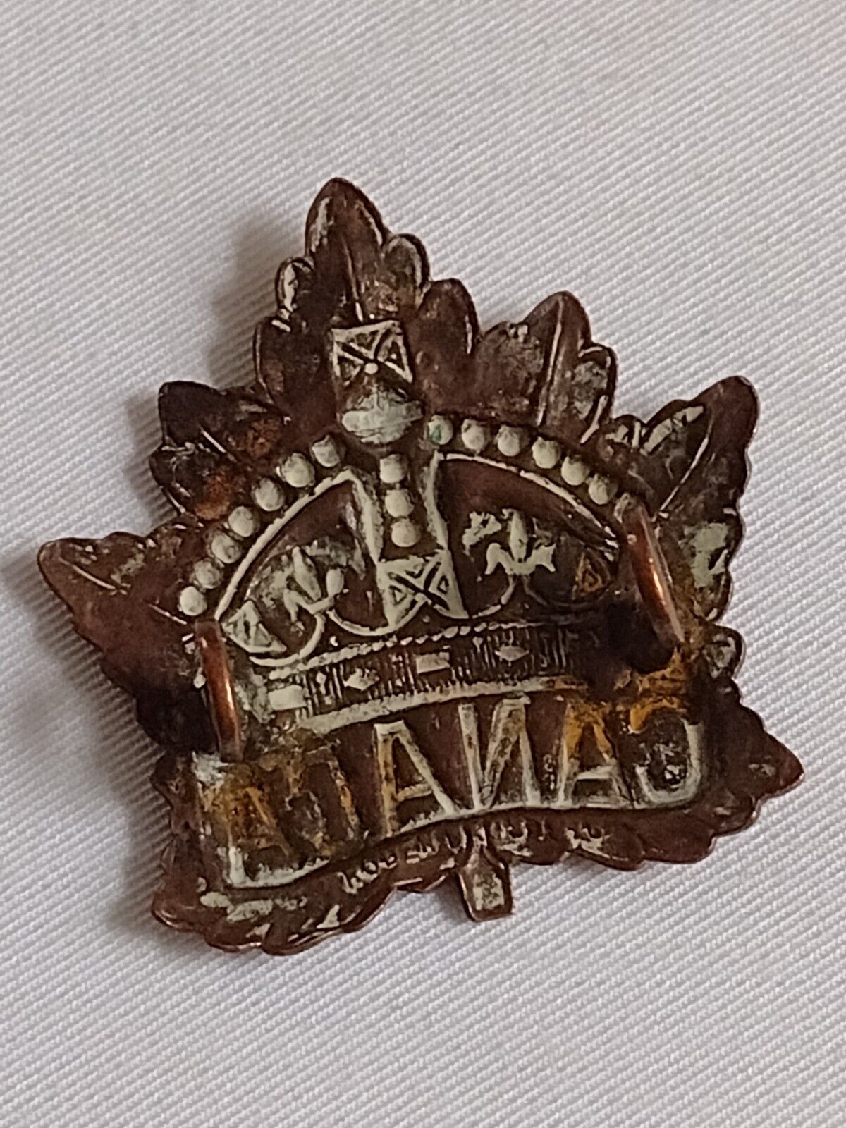 WW1 Canadian General Service Corps Cap Badge KC Bronze 2 Lugs Antique Original