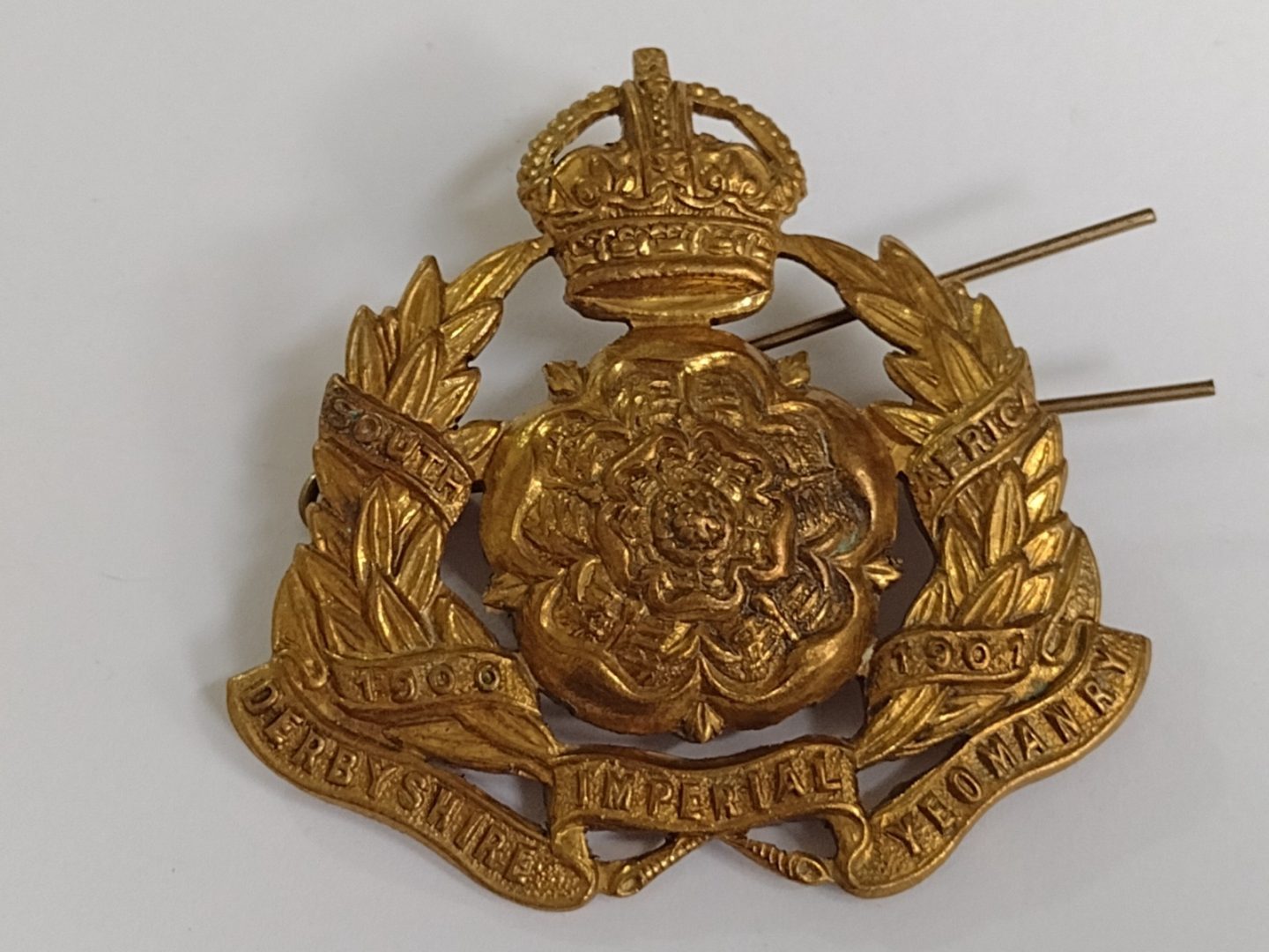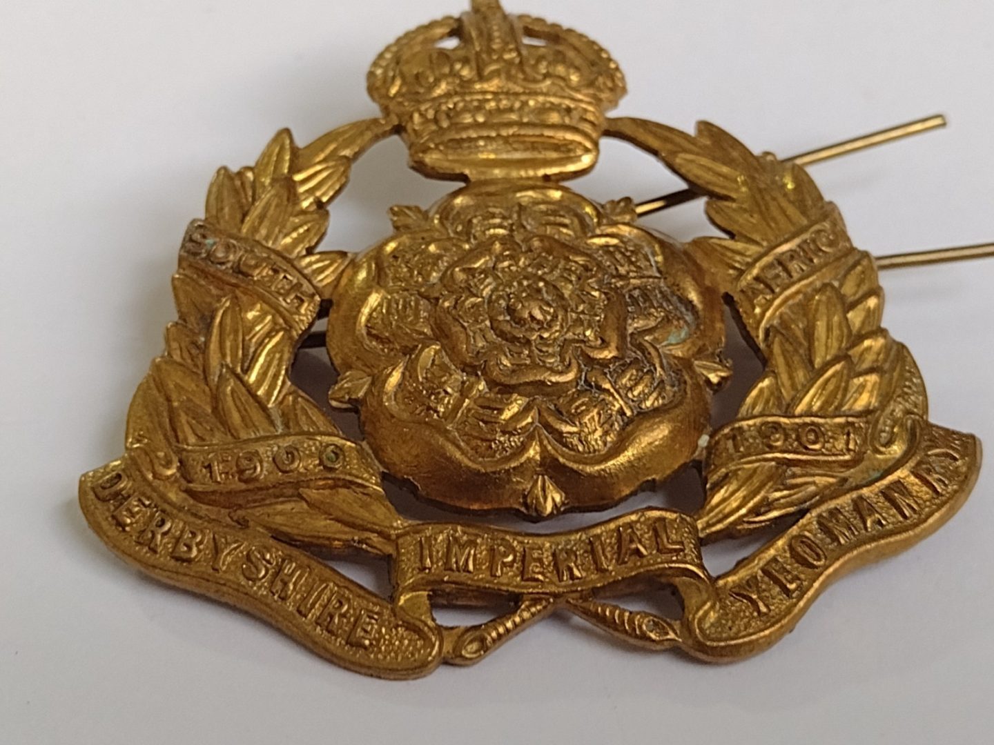 WW1 Derbyshire Imperial Yeomanry Cap Badge Brass Economy 60mm – Antique Original