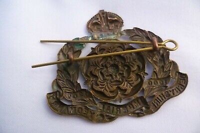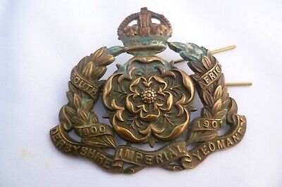 WW1 Derbyshire Imperial Yeomanry Cap Badge KC All Brass 2 Lugs 56mm Antique Org