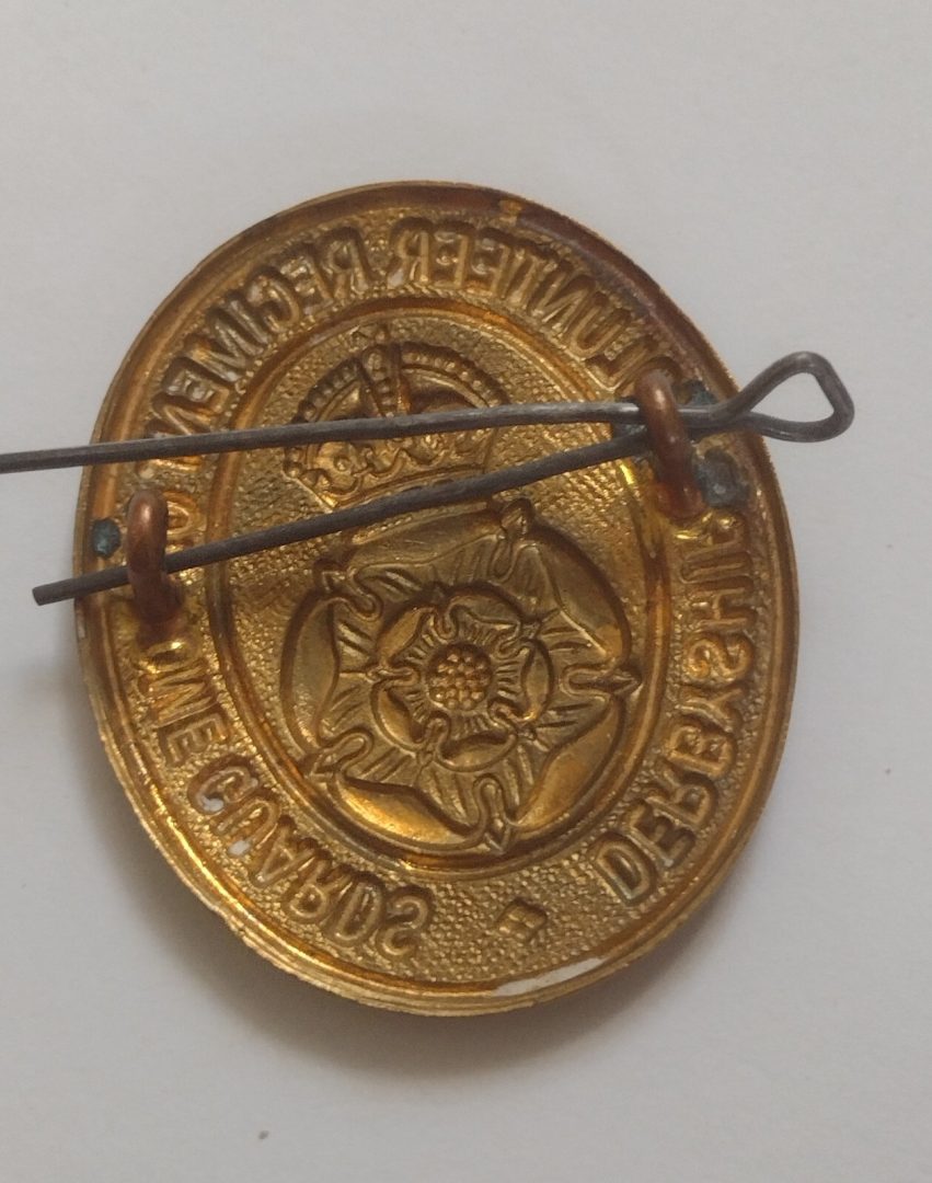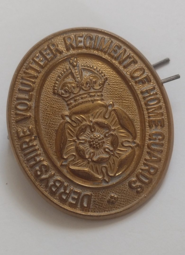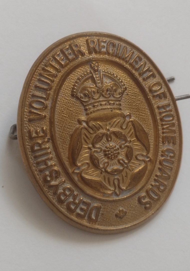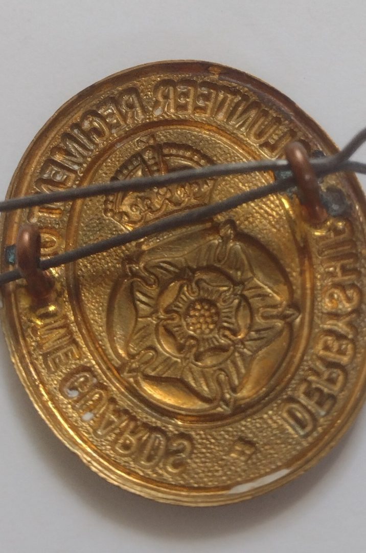 WW1 Derbyshire Volunteer Regiment Home Guards Original Cap Badge Brass Antique