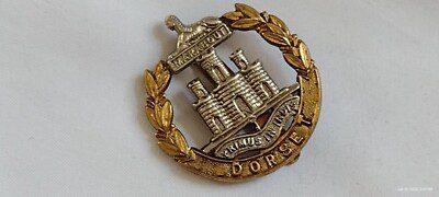 WW1 Dorset Regiment Cap Badge Bi-Metal Slider 45 mm ANTIQUE Original