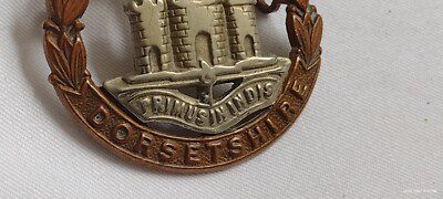 WW1 Dorsetshire Regiment Cap Badge Bi-Metal 2 Lugs Antique – Original