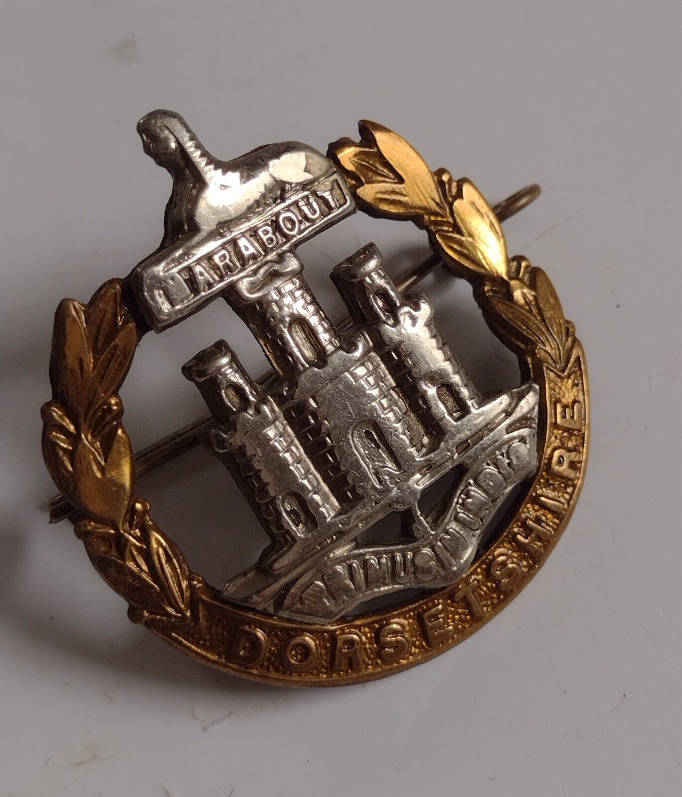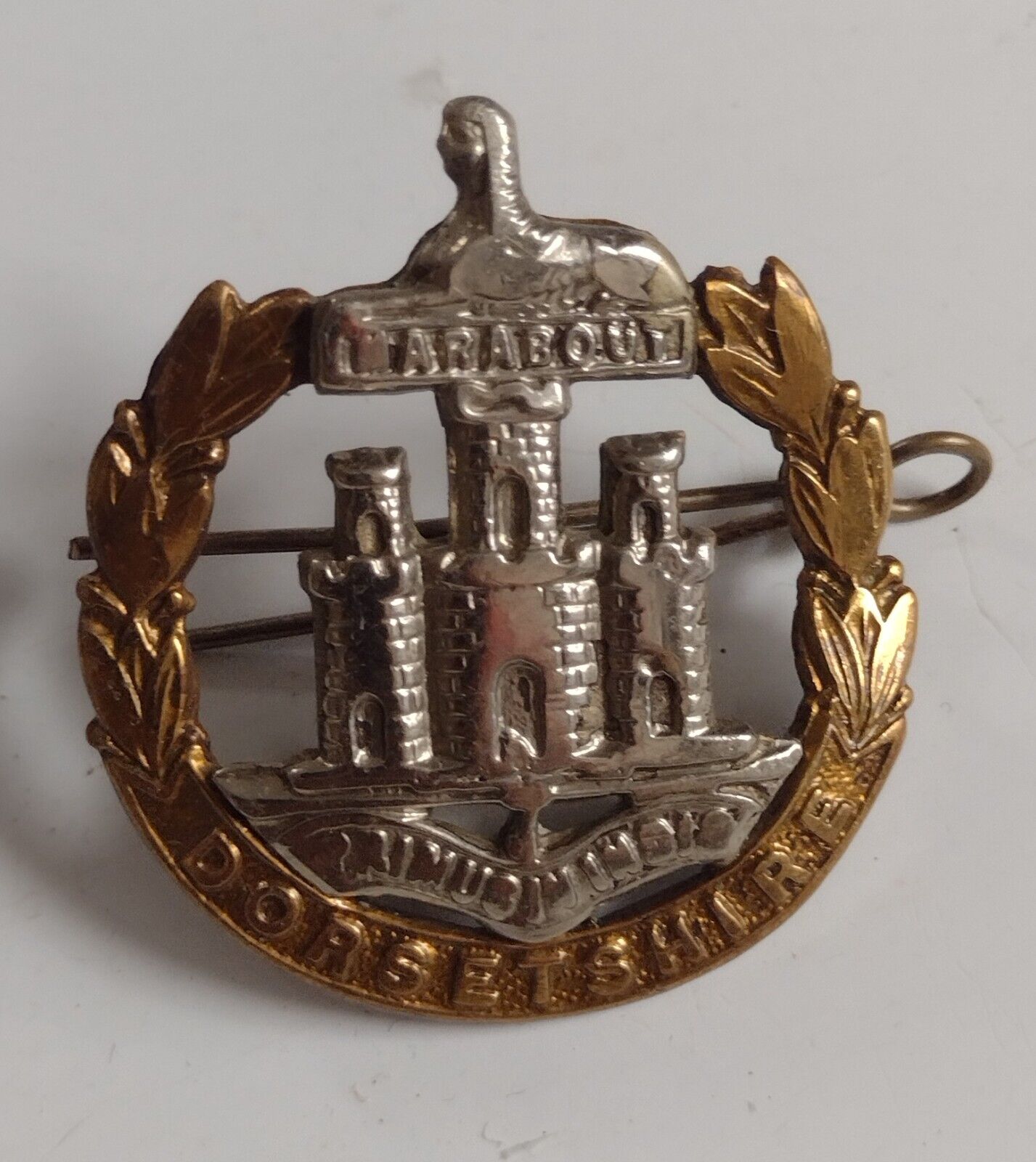 WW1 Dorsetshire Regiment Cap Badge Bi-Metal 2Lugs 44mm Antique Original