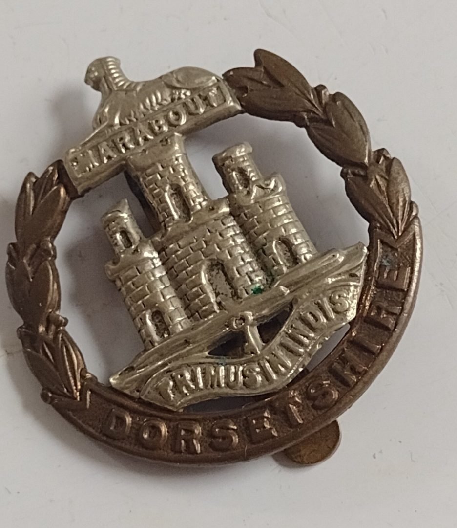 WW1 Dorsetshire Regiment Cap Badge Bi-Metal Slider 44mm Antique Original