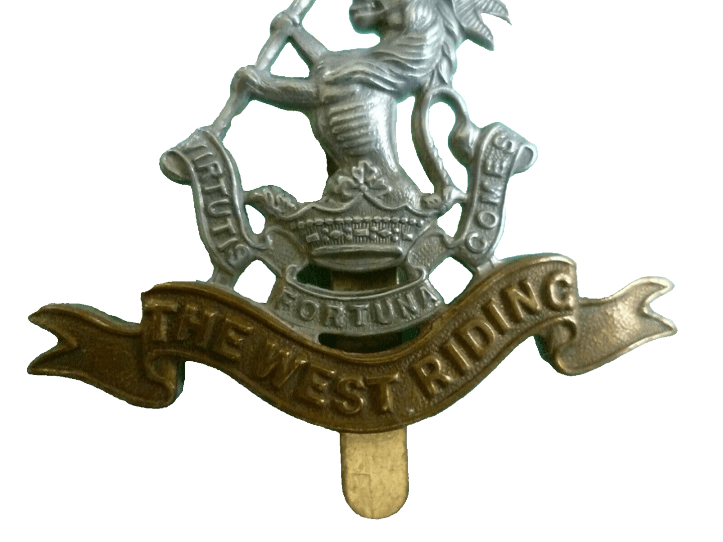 WW1 Duke of Wellingtons West Riding Regiment Cap Badge Bi-Metal Slider Antique