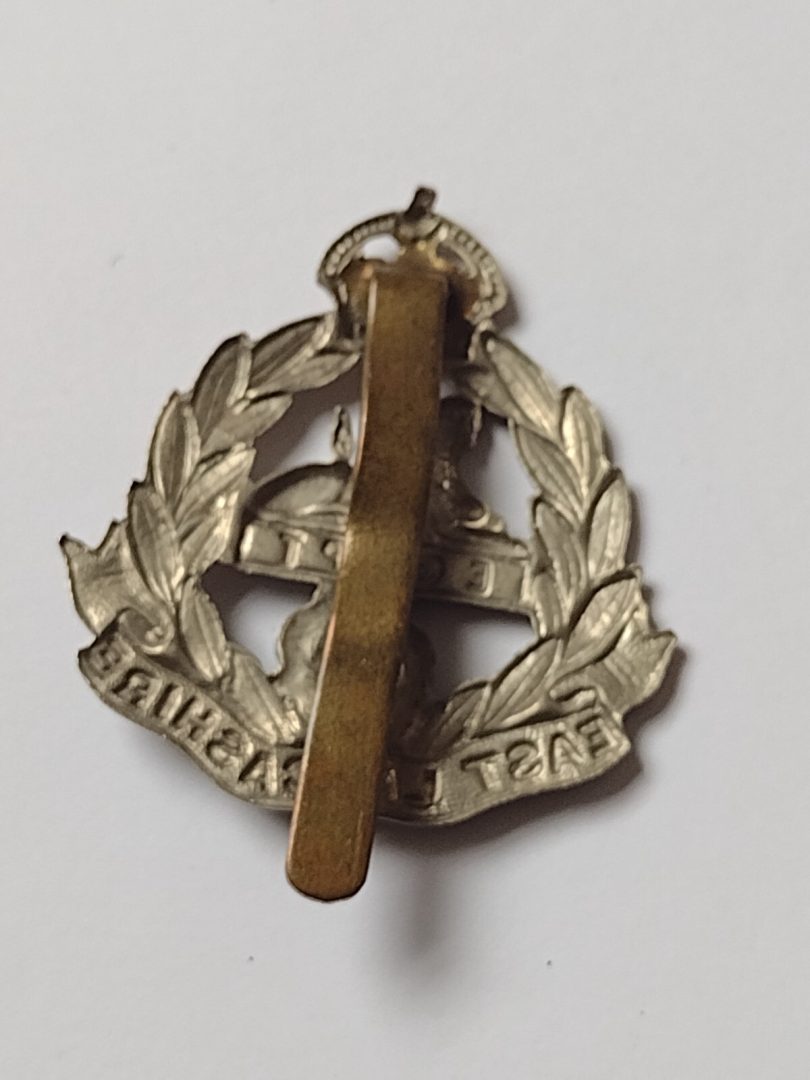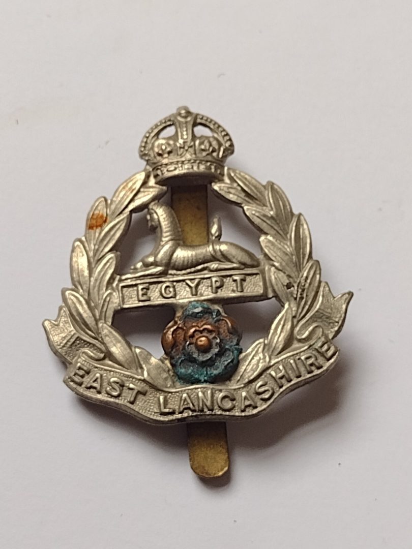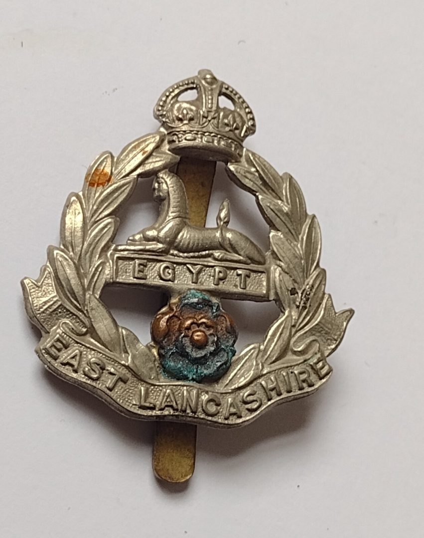WW1 East Lancashire Regiment Cap Badge KC Bi-metal Slider 45mm Antique Original