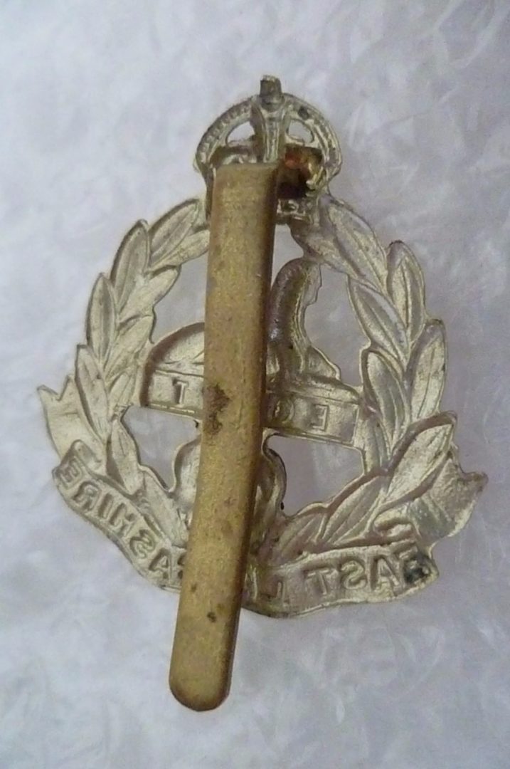 WW1 East Lancashire Regiment Cap Badge KC EL Bi-Metal Slider ANTIQUE Org