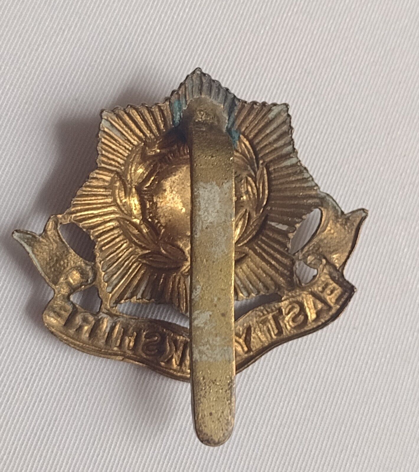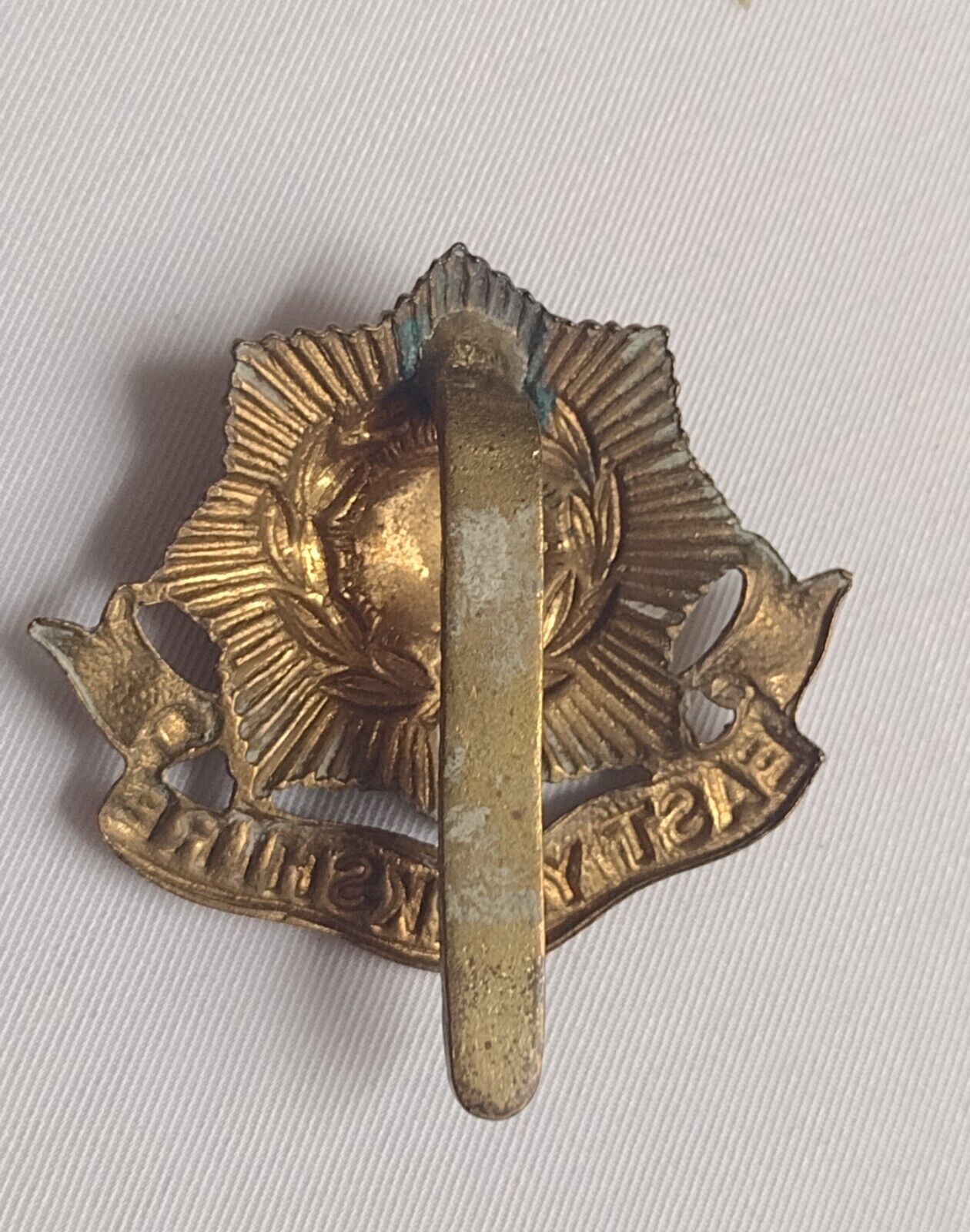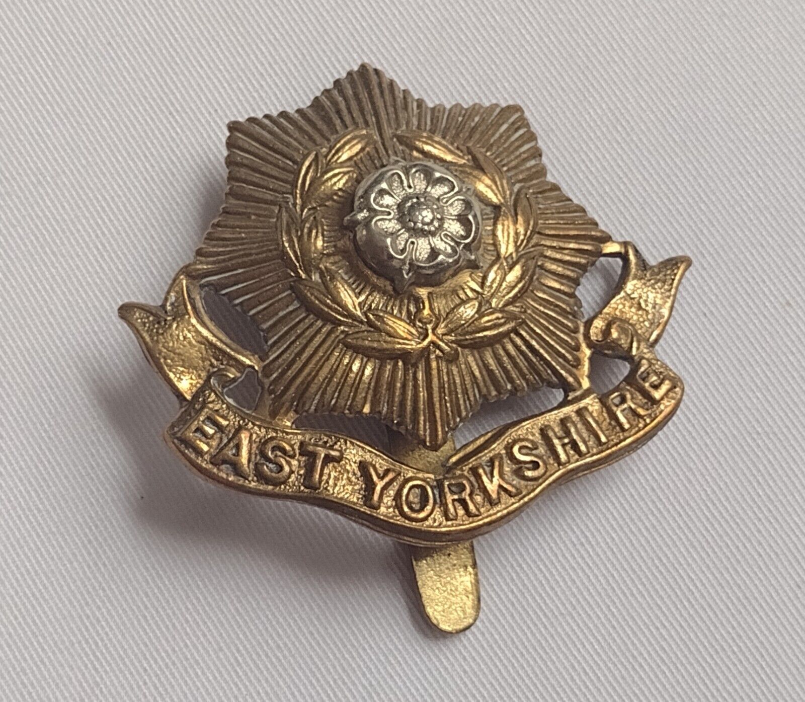 WW1 East Yorkshire Regiment Cap Badge Bi-Metal Slider 40mm Antique Original