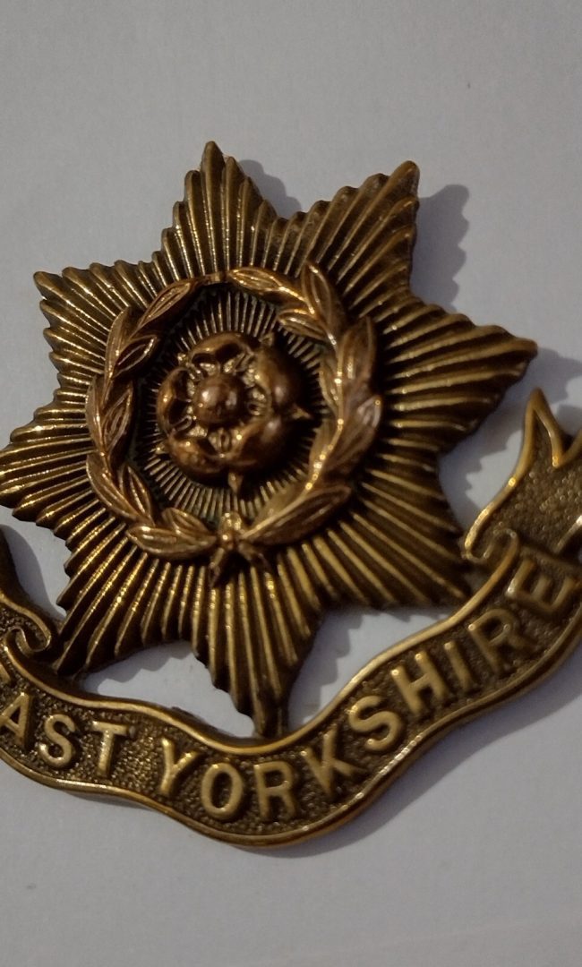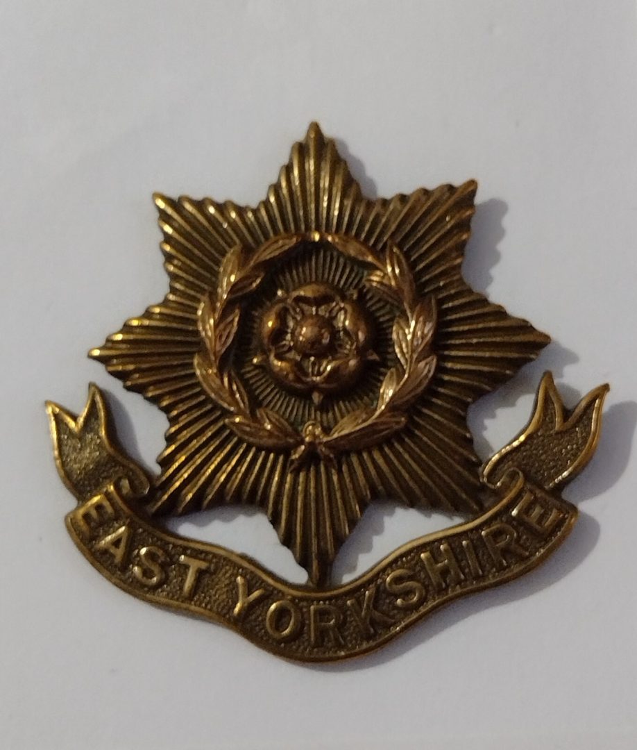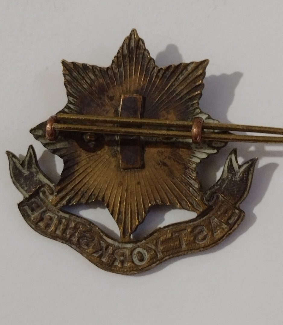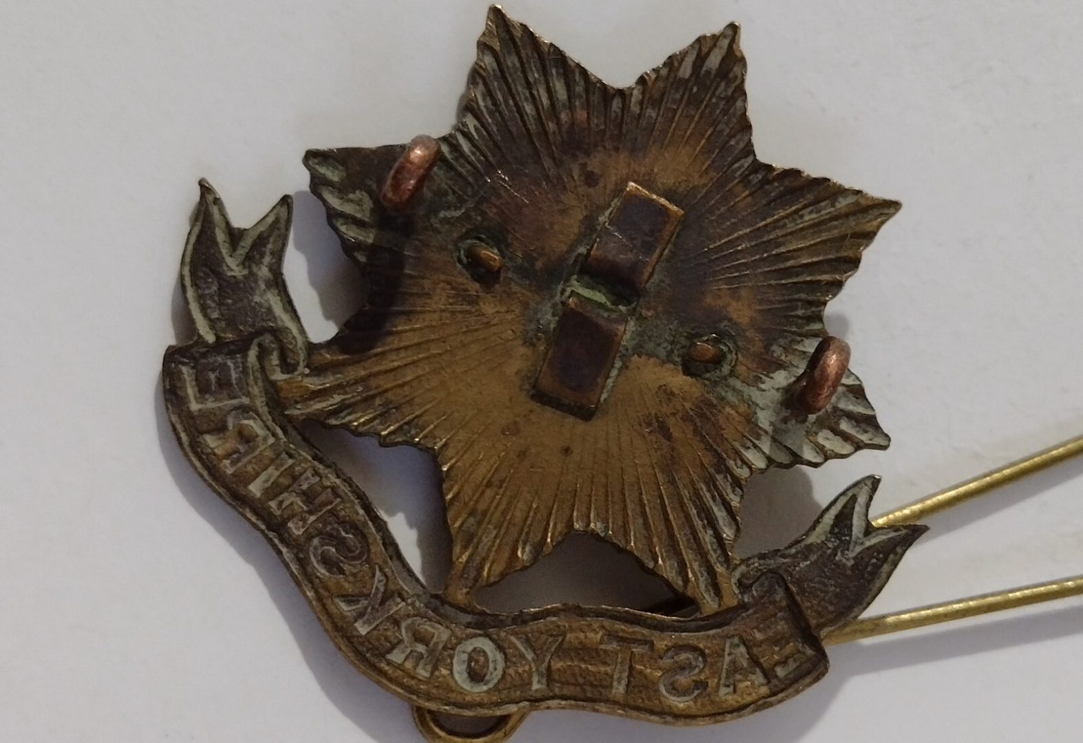 WW1 East Yorkshire Regiment Cap Badge Brass Economy Issued 2 Lug 2 Parts ANTIQUE
