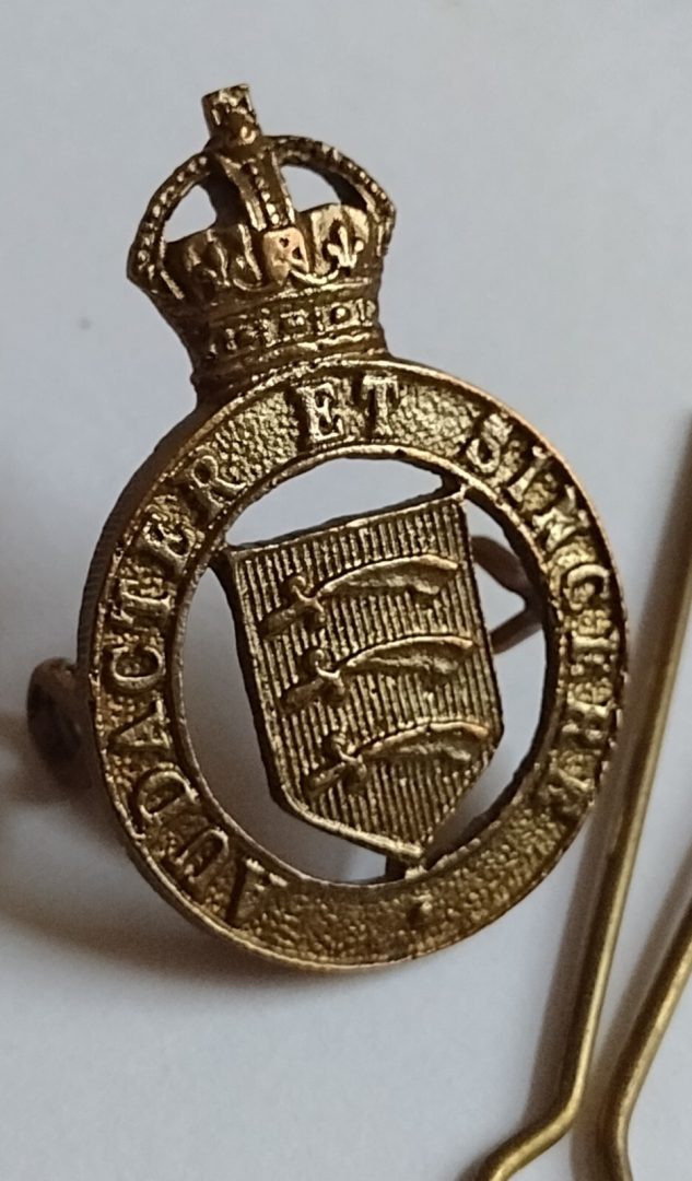 WW1 Essex Imperial Yeomanry Cap Badge KC Cast Brass 2Lugs 33mm ANTIQUE Org