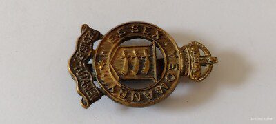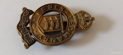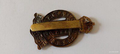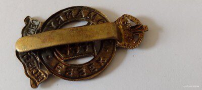 WW1 Essex Yeomanry Cap Badge KC All Brass Slider Antique Original