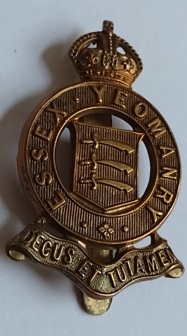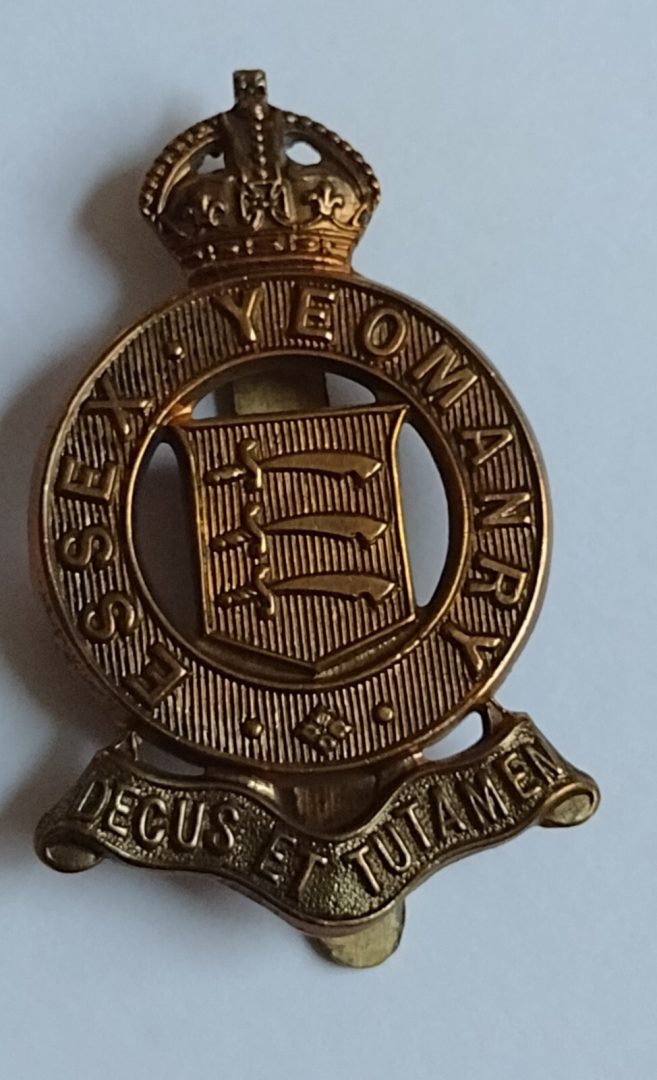 WW1 Essex Yeomanry Dragoons Cap Badge KC All Brass Economy Slider Antique Org