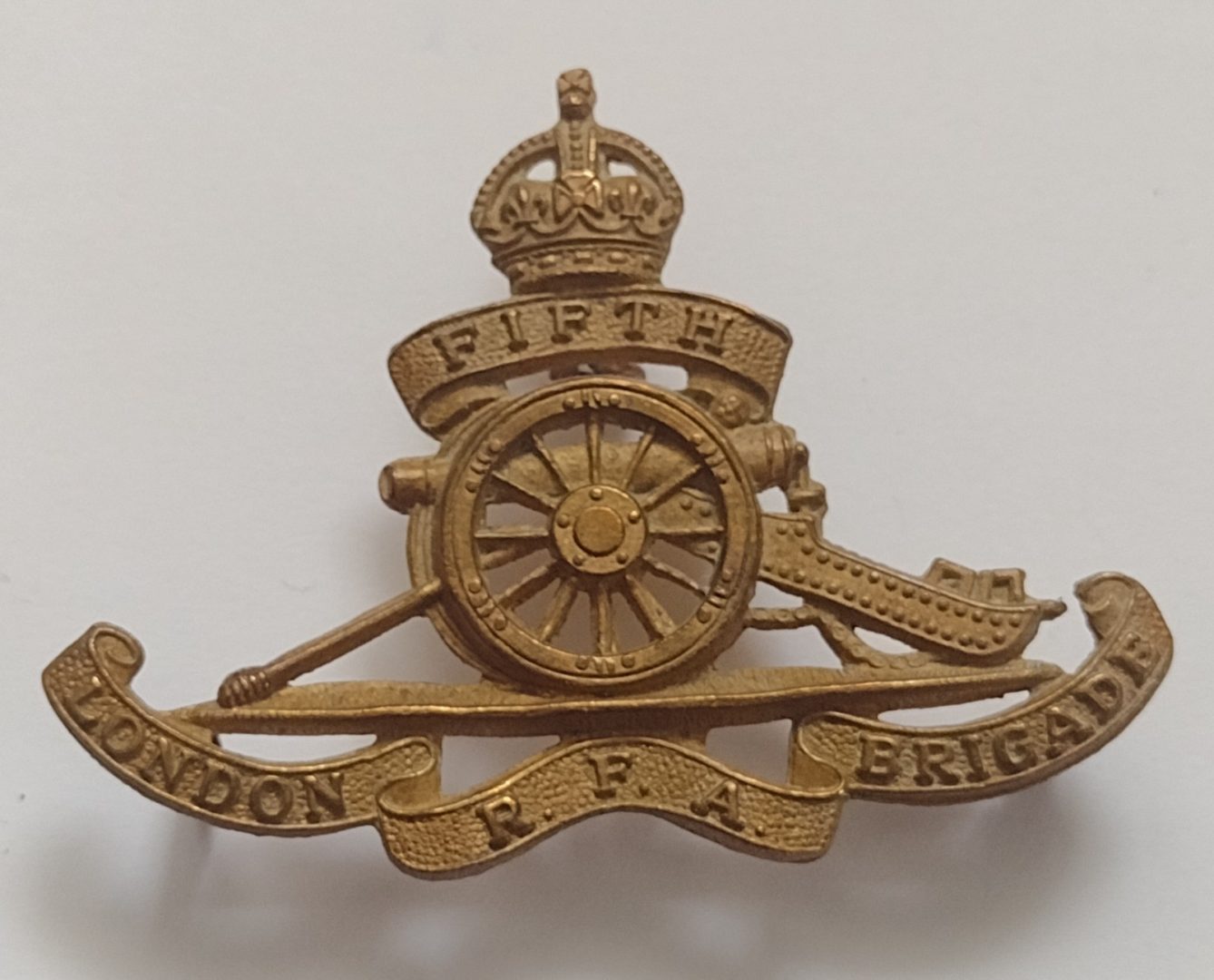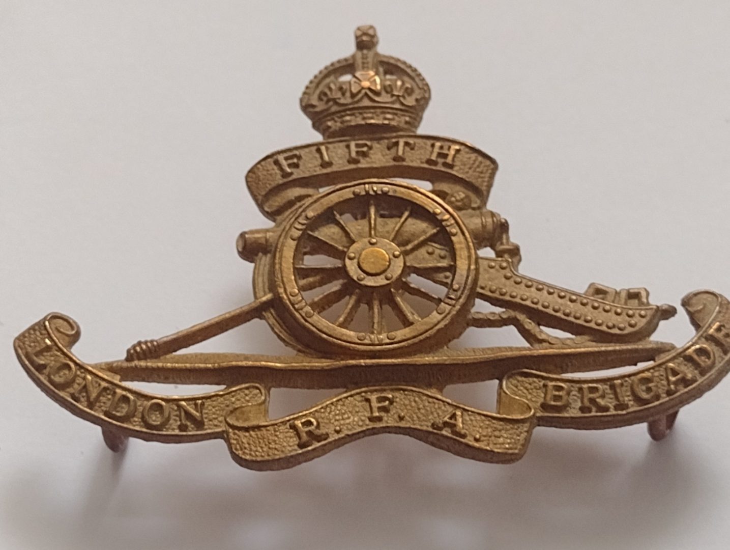 WW1 Fifth London Brigade Royal Field Artillery (R.F.A.) Cap Badge Brass Original