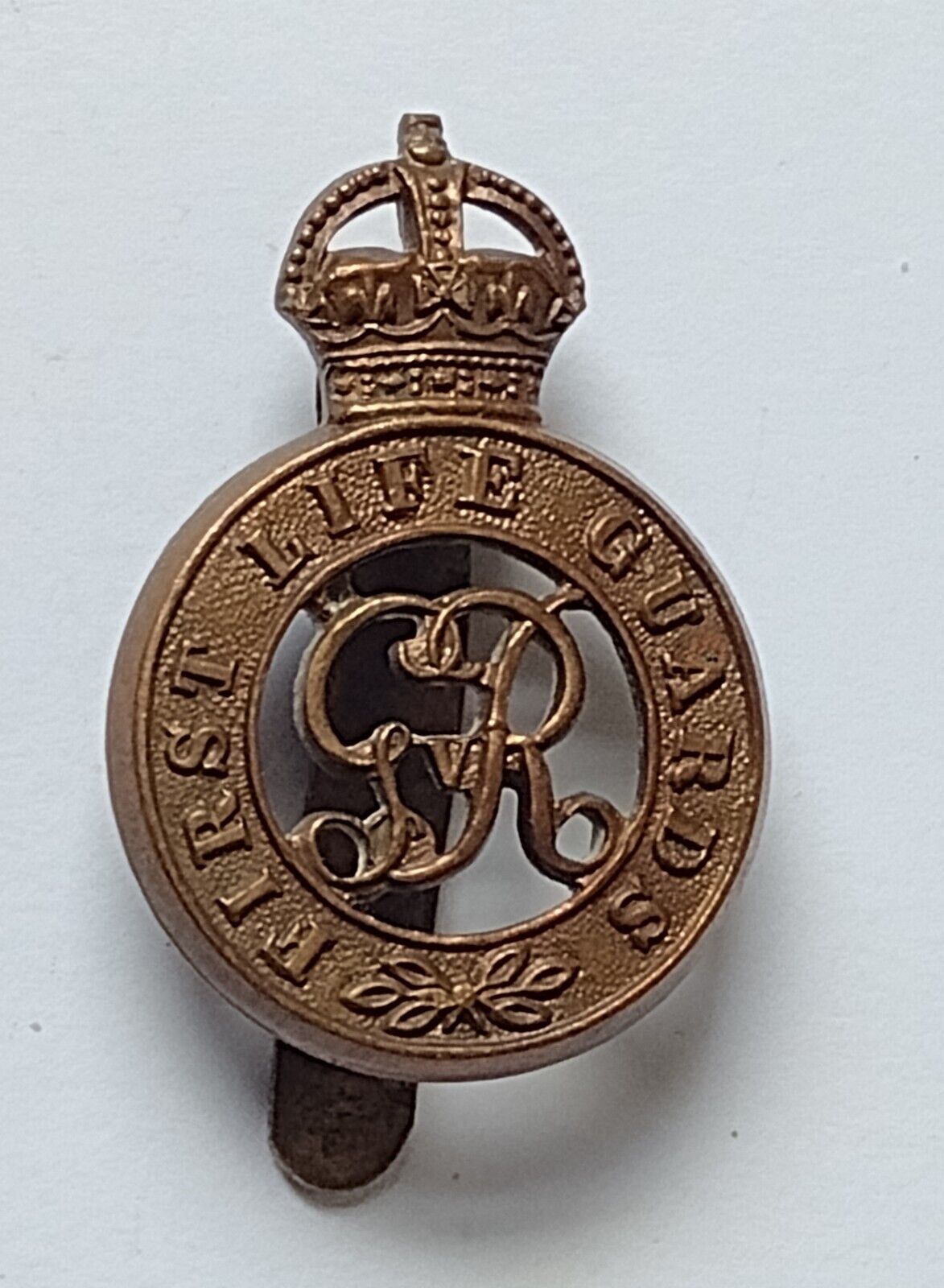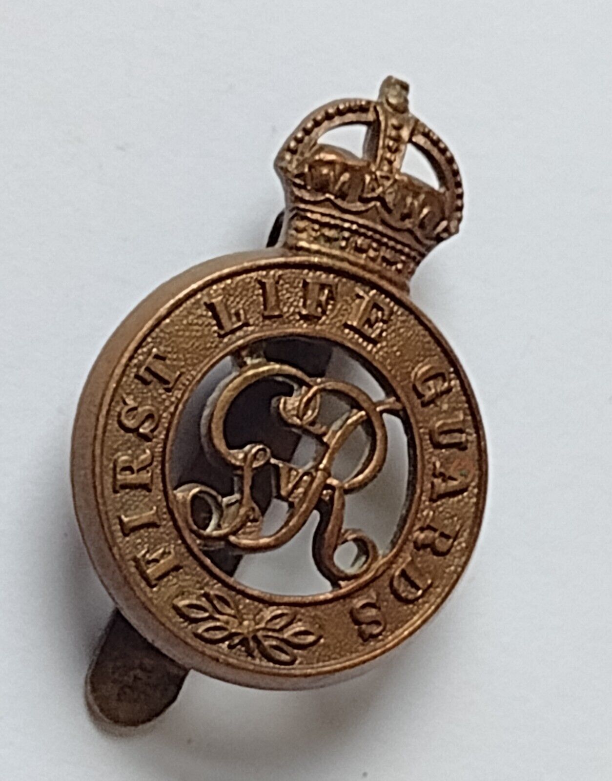 WW1 First Life Guards Cap Badge KC GV Brass Slider 40mm Antique Original