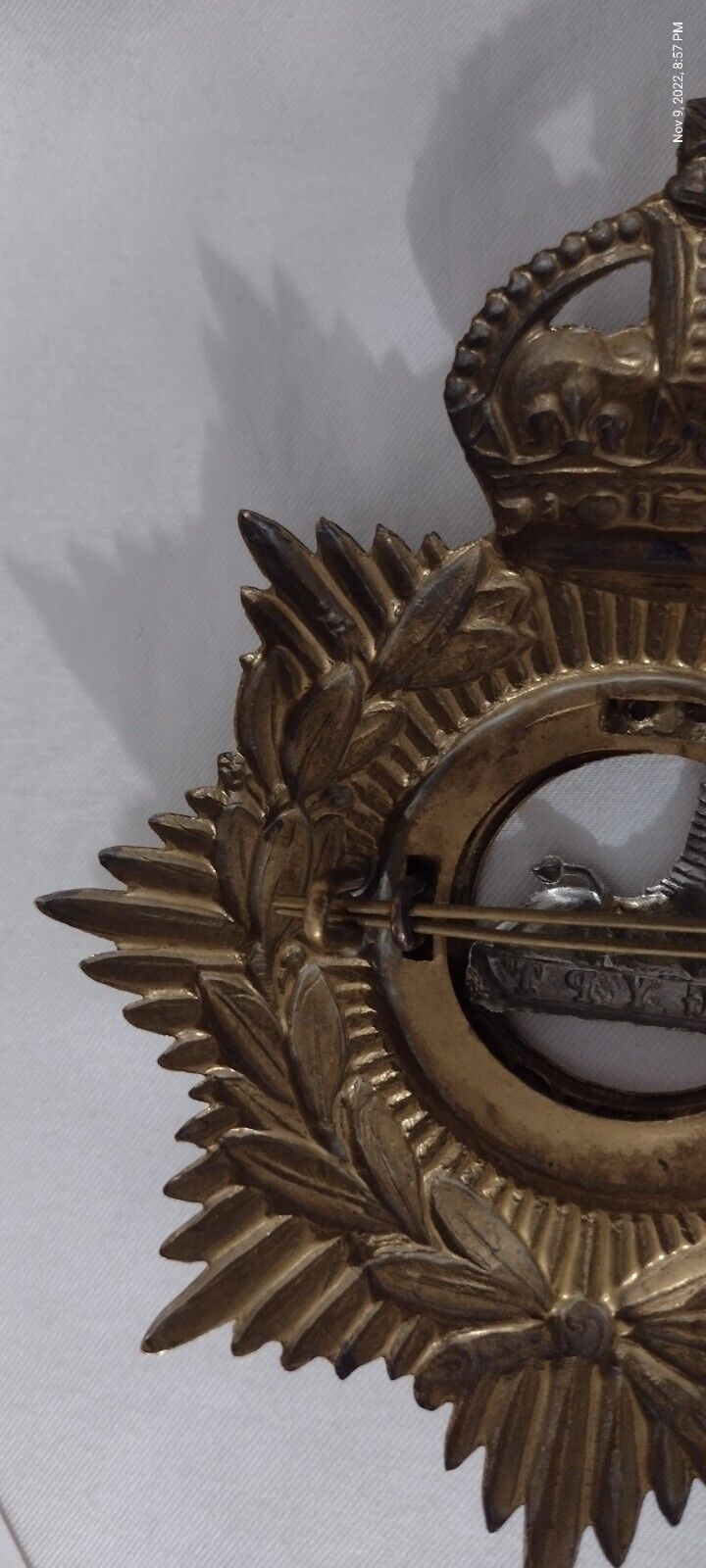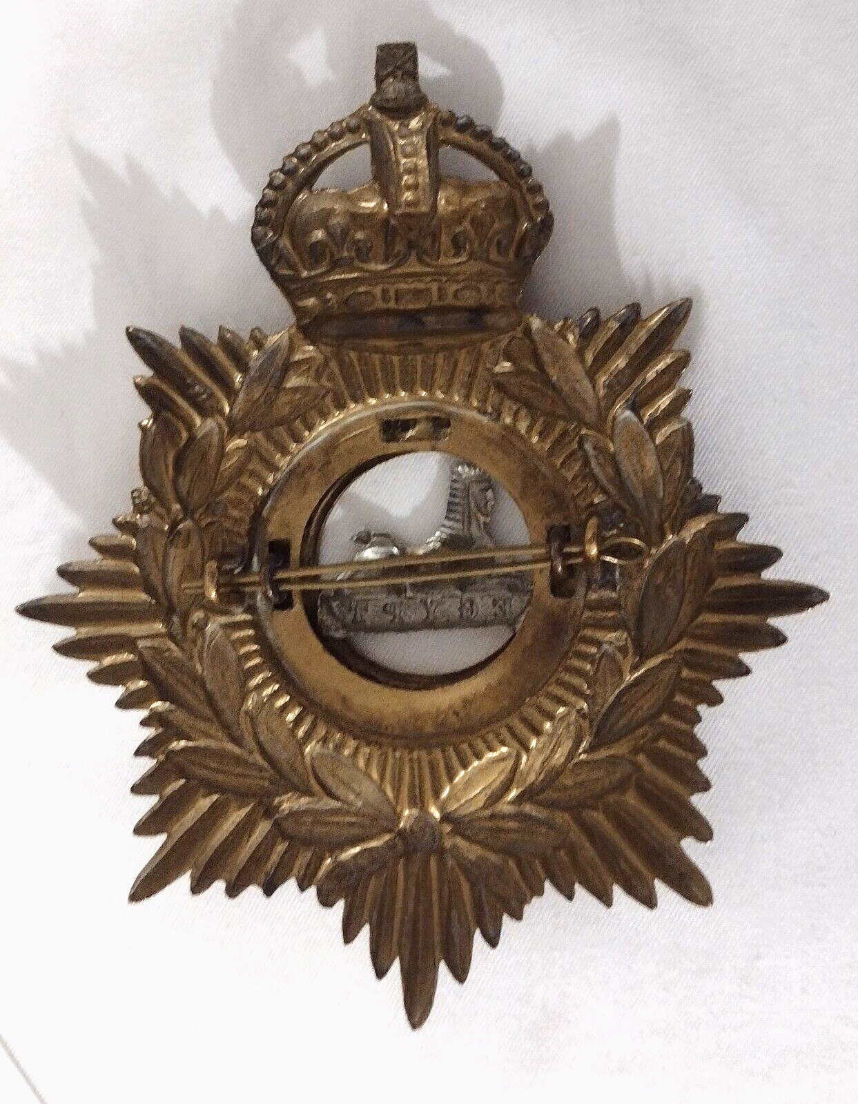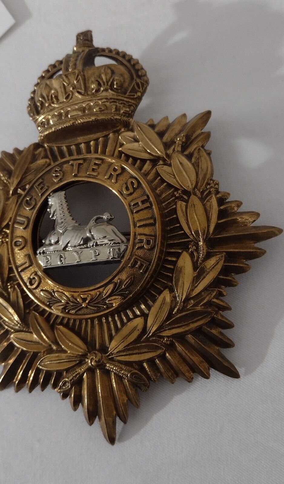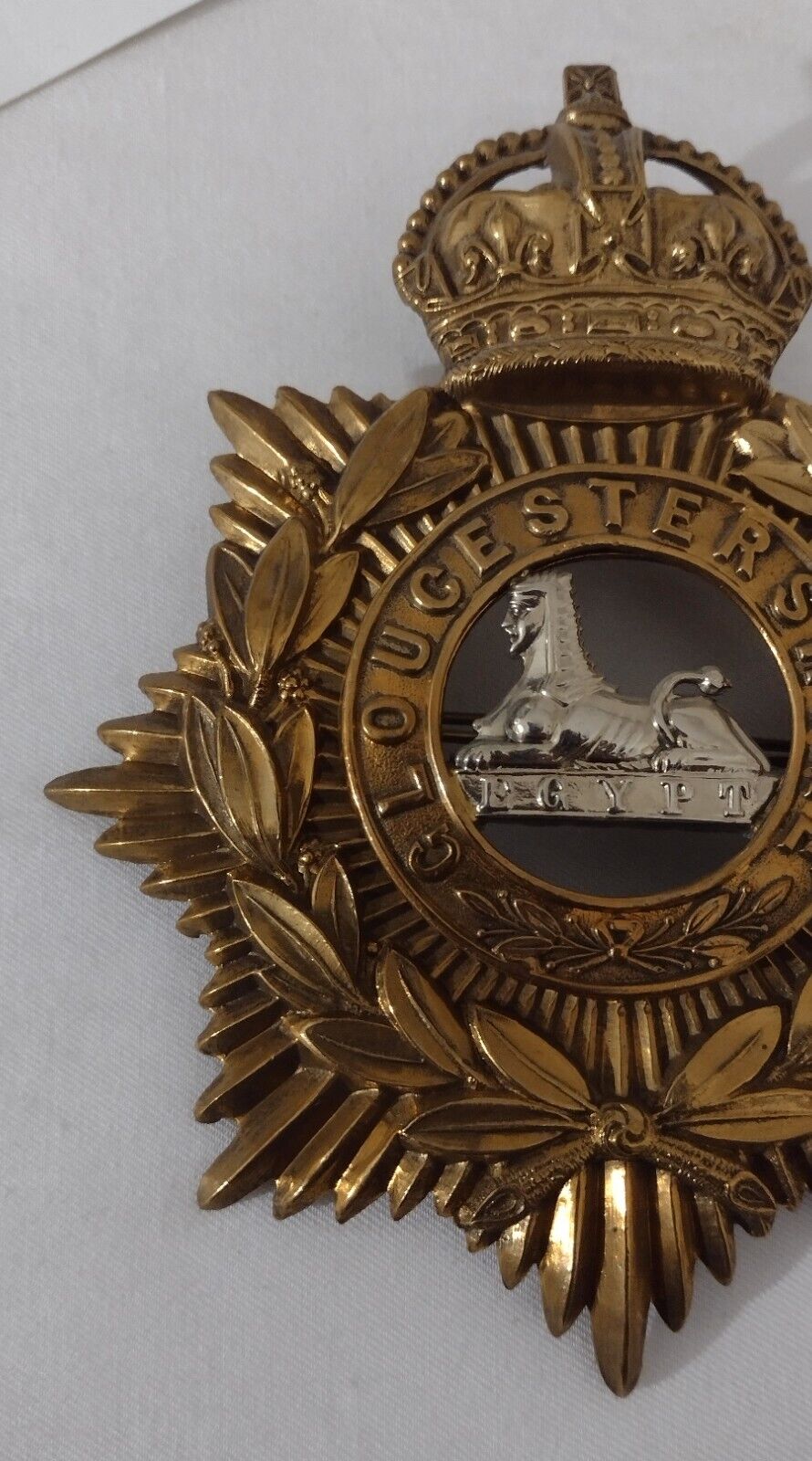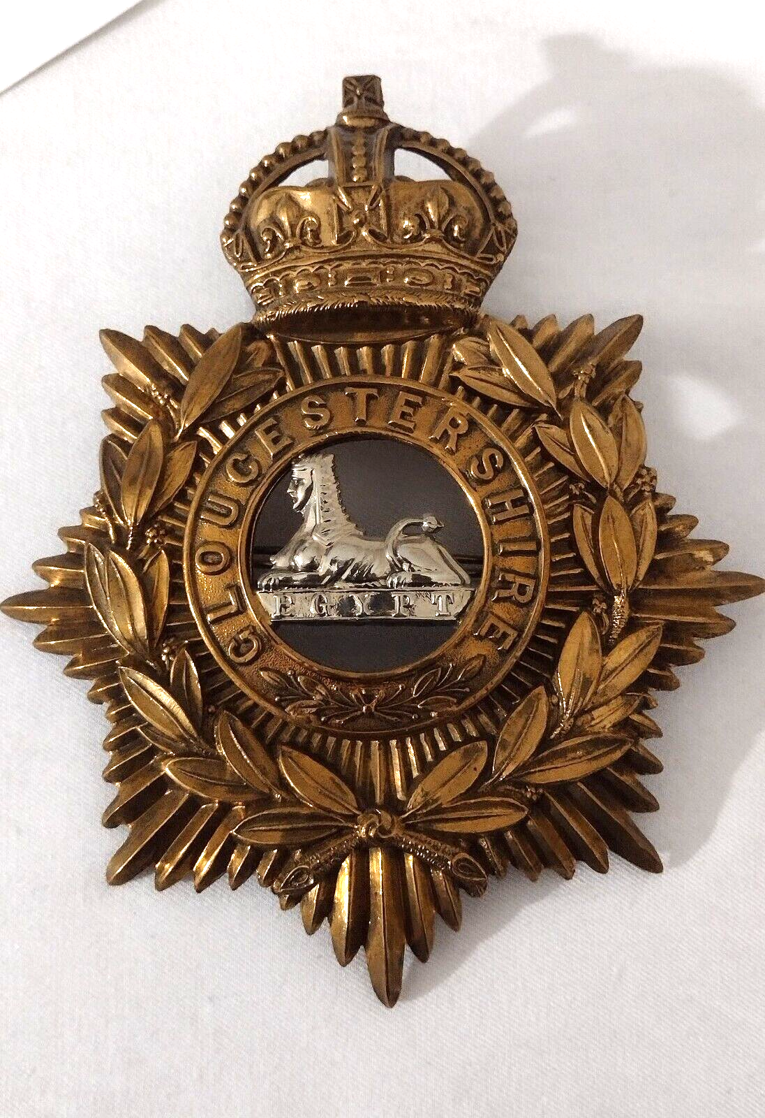 WW1 Gloucestershire Regiment Helmet Badge KC 1902-1914 Bi-Metal 130 mm ANTIQUE