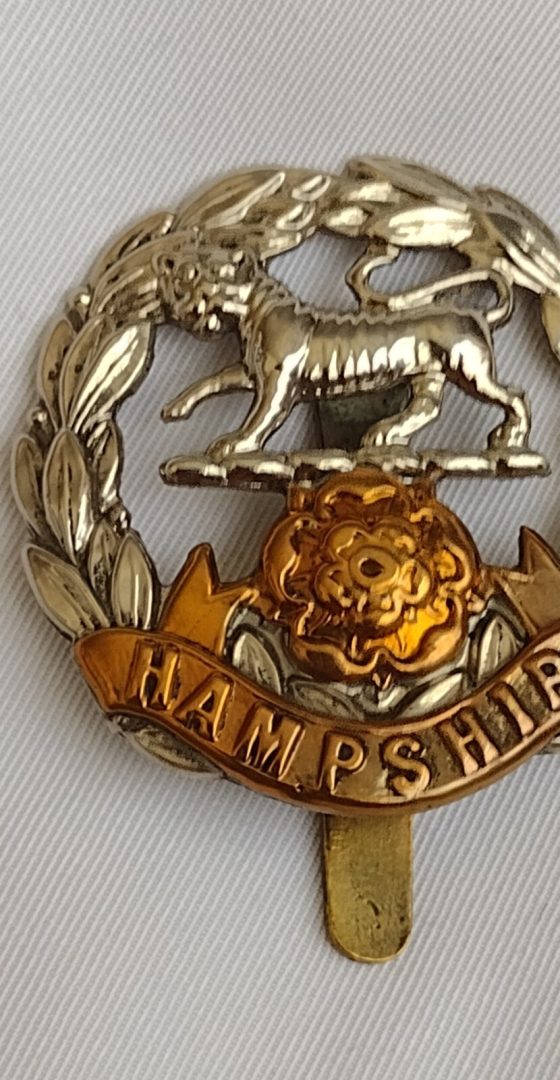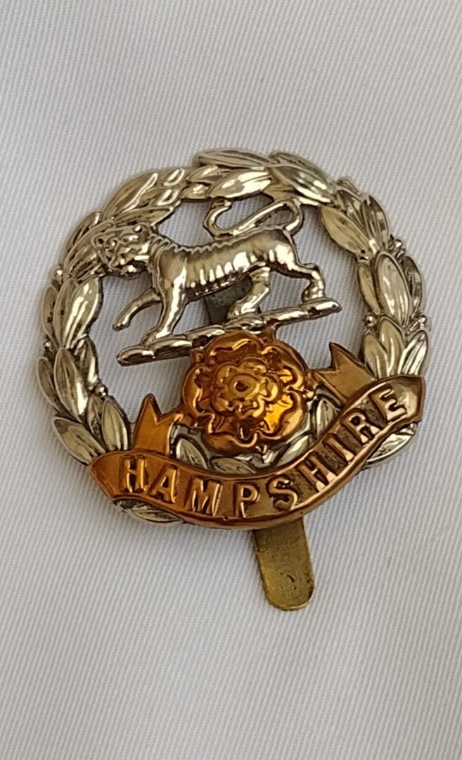 WW1 Hampshire Regiment Cap Badge Bi-Metal Slider 40mm ANTIQUE Original